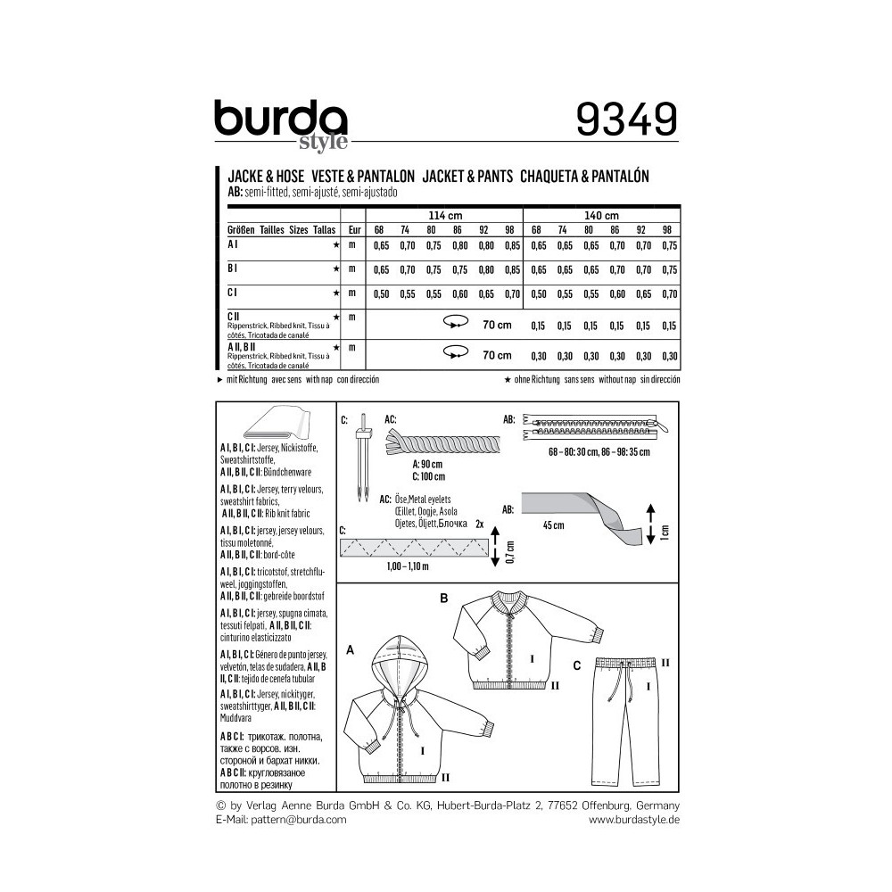 Dětský střih Burda na teplákovou soupravu - mikinu, mikinu s kapucí a tepláky