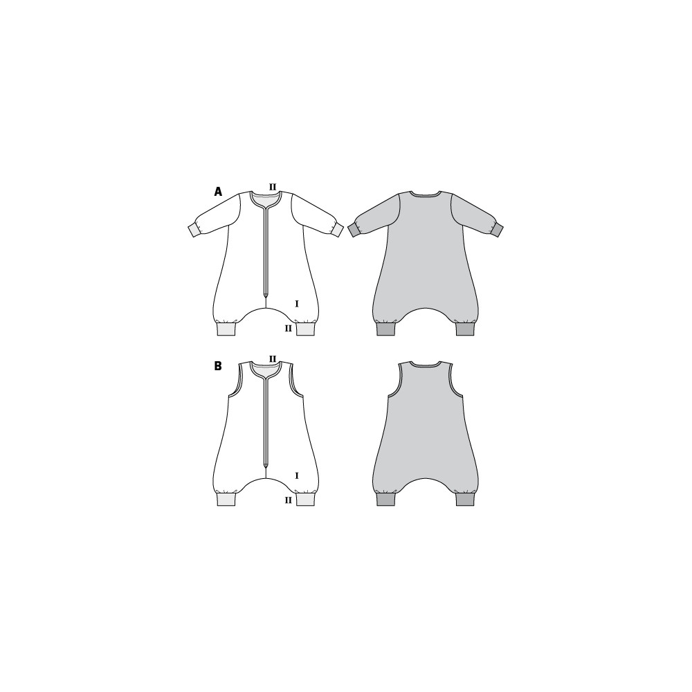 Střih ve velikostech EUR 68-98, úroveň obtížnosti šití: 2 (lehká), doporučené látky: fleece, teplákovina, žerzej