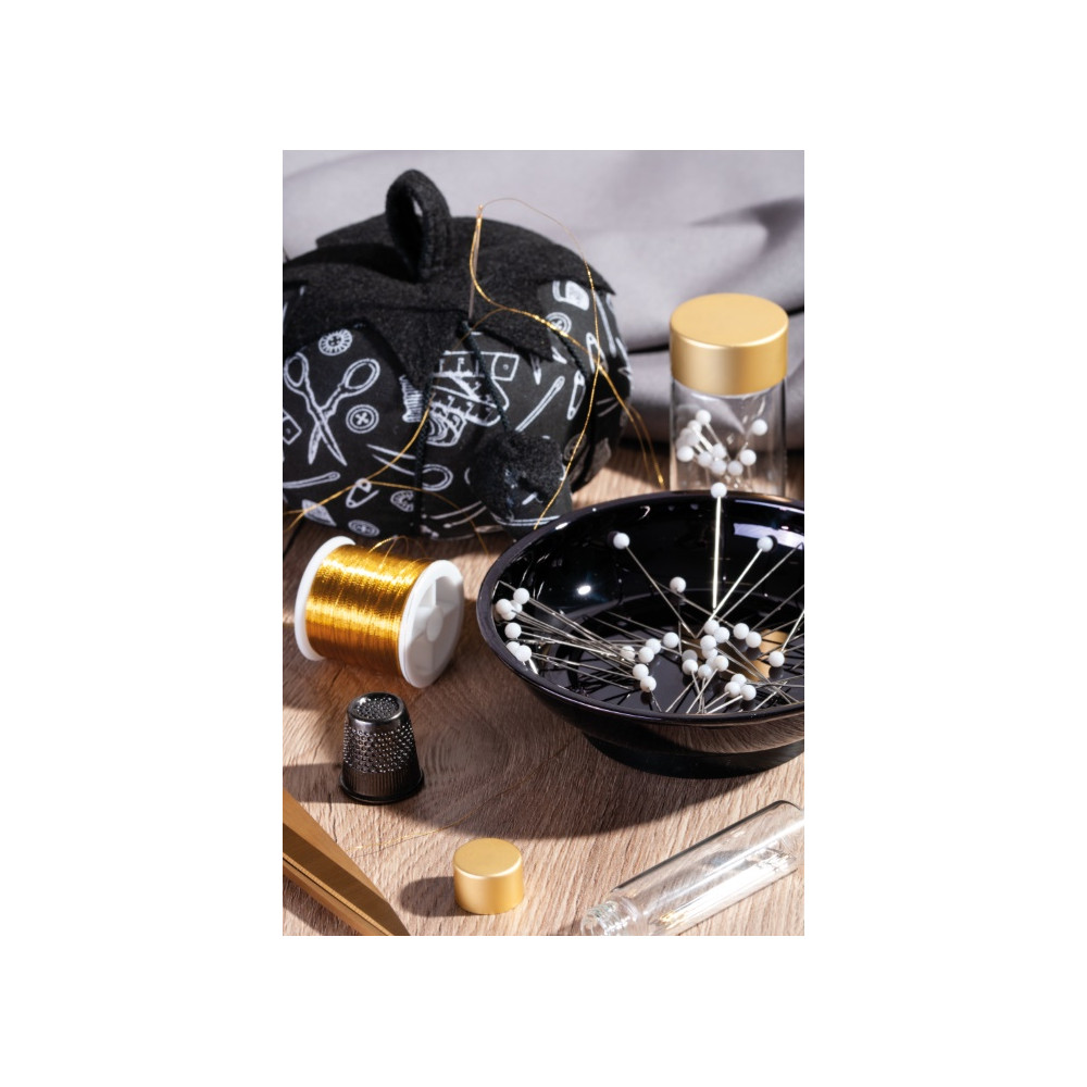Více se dočtete v popisuPoniklovaný náprstek Premium (velikost 17 x 18 x18 mm) v matné černé barvě. Zapuštěná horní plocha zabraňuje klouzání jehel.