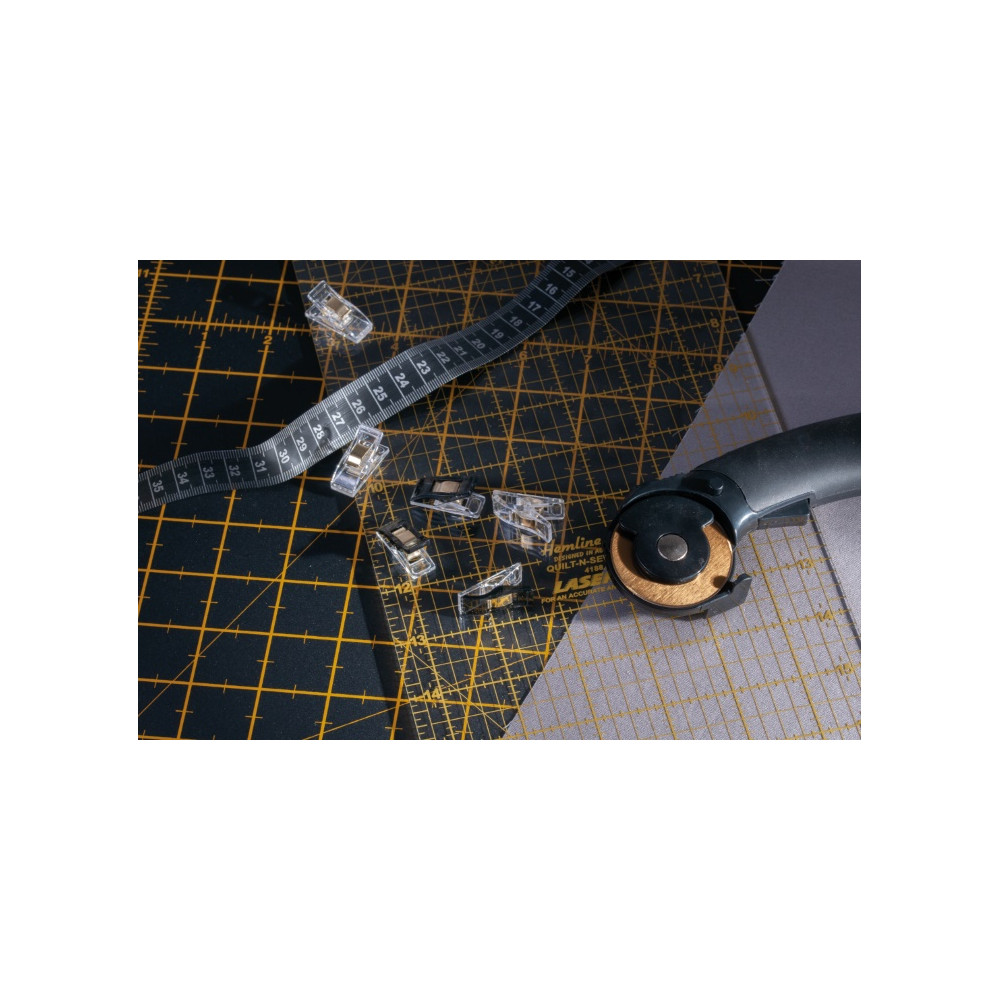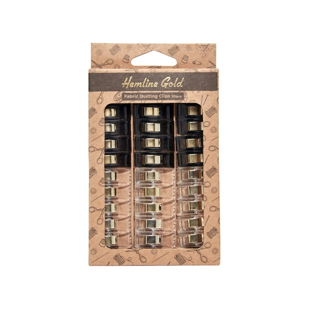 Více se dočtete v popisuBalení 30 kolíčků na látky Premium v černé a transparentní barvě se zlatými prvky. Snadno, šetrně a bezpečně udrží látky a švy u sebe - nezanechají nežádoucí stopy na látce (např. vpichy po špendlících). Velikost 1 kolíčku 17 x 25 x 8 mm.