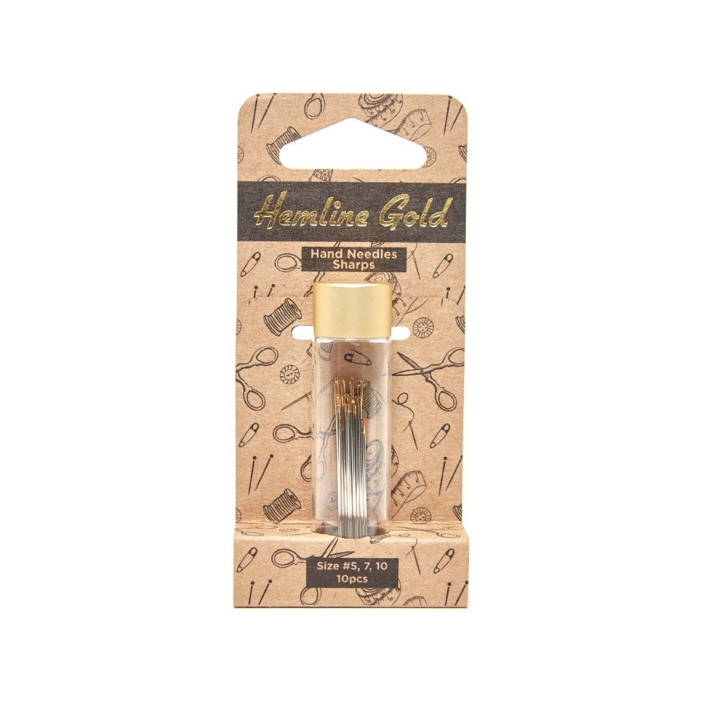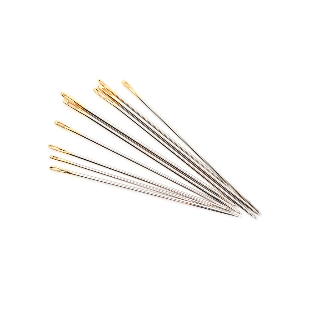 Více se dočtete v popisuRuční jehly prvotřídní kvality vyrobené z odolné poniklované karbonové oceli - neohýbají se, ostré, se zlatým ouškem v opakovaně použitelné skleněné dóze s víčkem v barvě leštěného zlata. Balení obsahuje 10 jehel ve 3 velikostech. Rozměry skleněné dózy: 60 x 16 x 16 mm.