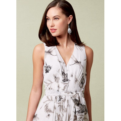 Návrhářský střih Vogue na šaty bez rukávů s V-výstřihem, sklady a rozšířenou sukní