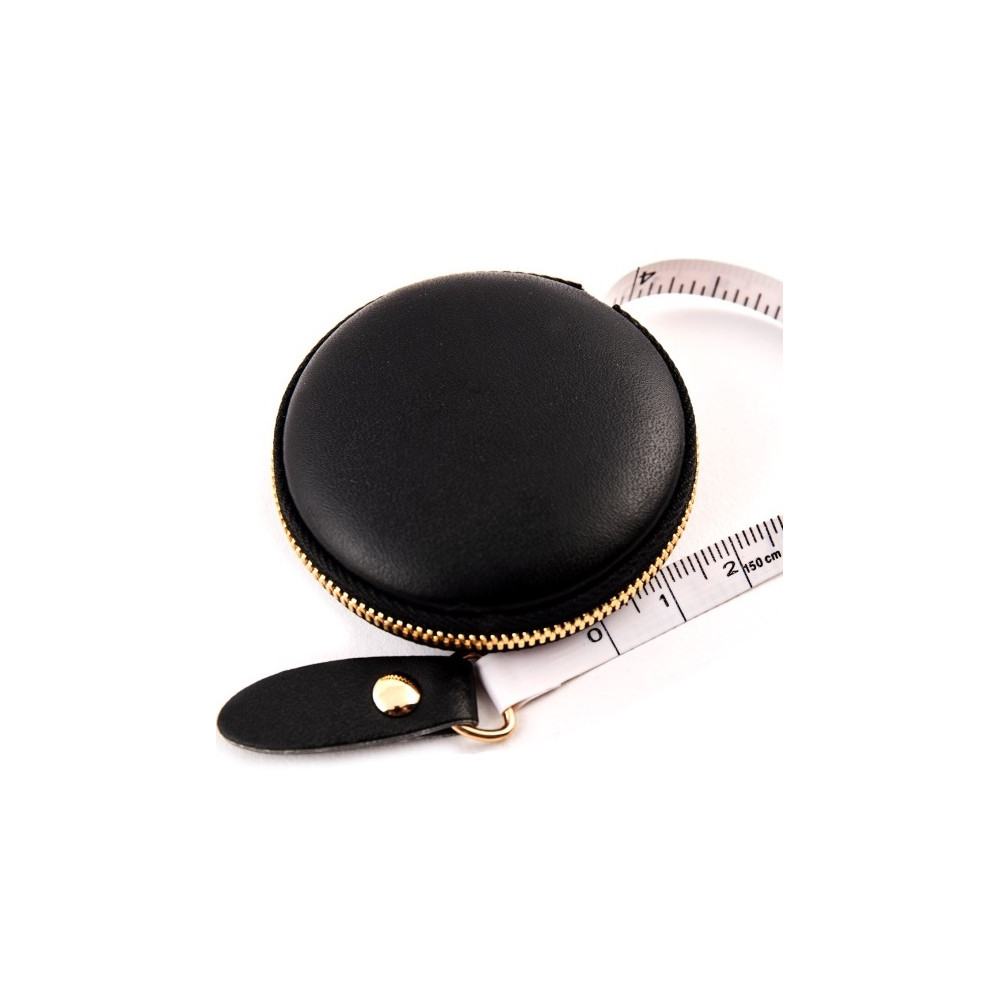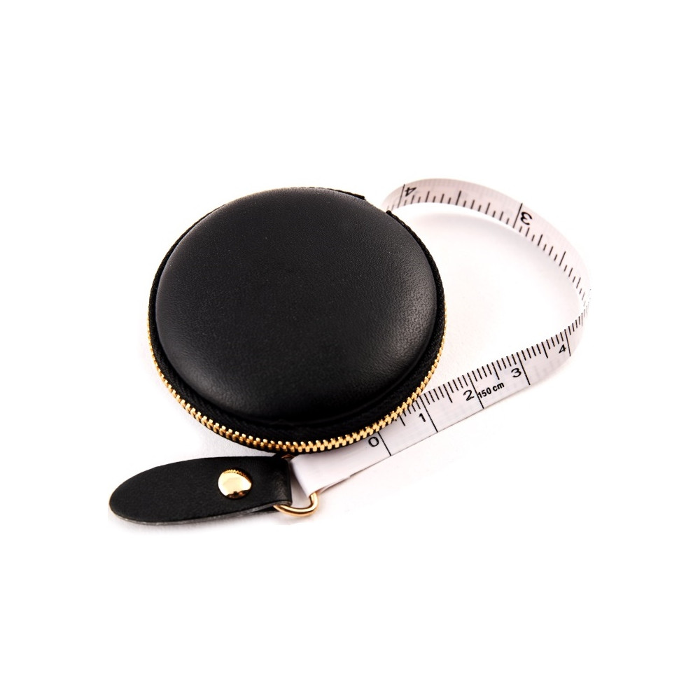 Krejčovský metr Premium v délce 150 cm s odolnou nepružnou páskou v elegantním černém koženkovém pouzdru se zlatým zipem