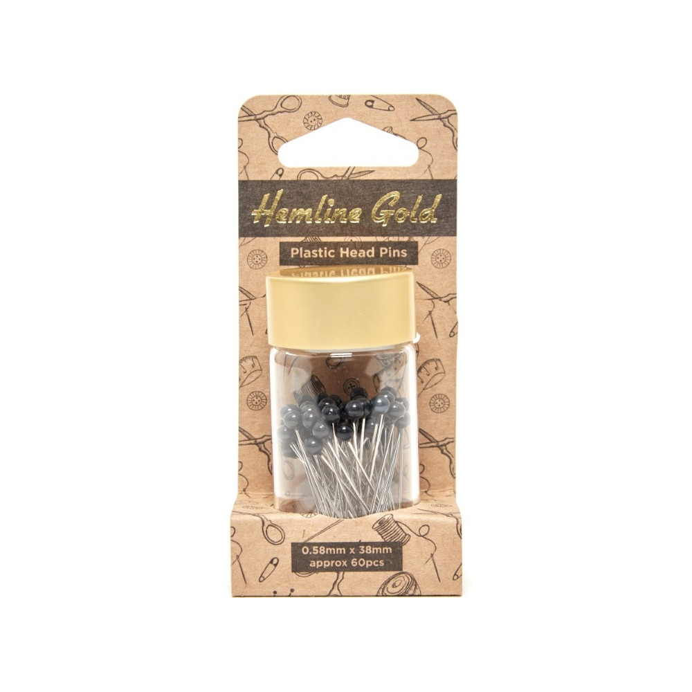 60 špendlíků prvotřídní kvality (neohýbají se) s černými plastovými hlavičkami, které se dobře uchopují a jsou dobře vidět