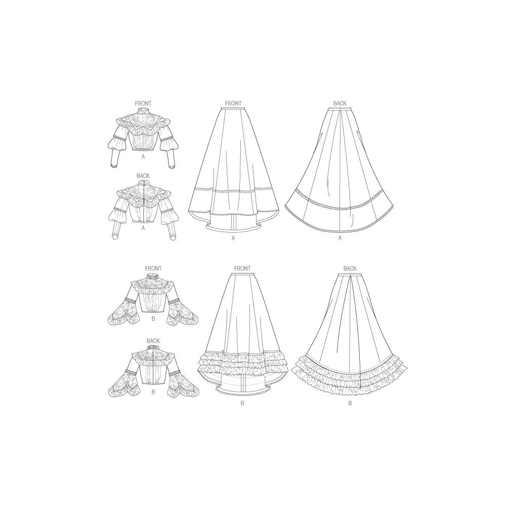 Střih Butterick na dámské historické zdobné sako a bohatou nabíranou sukni s volánky