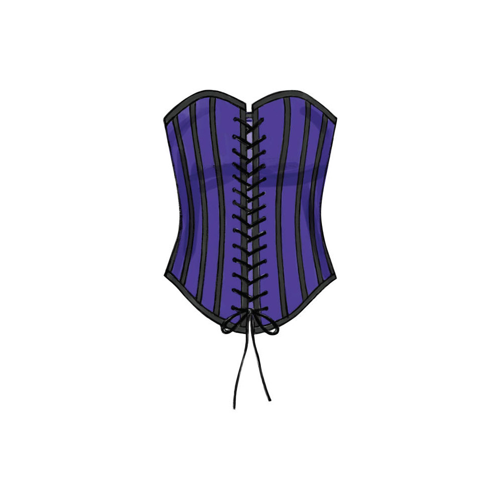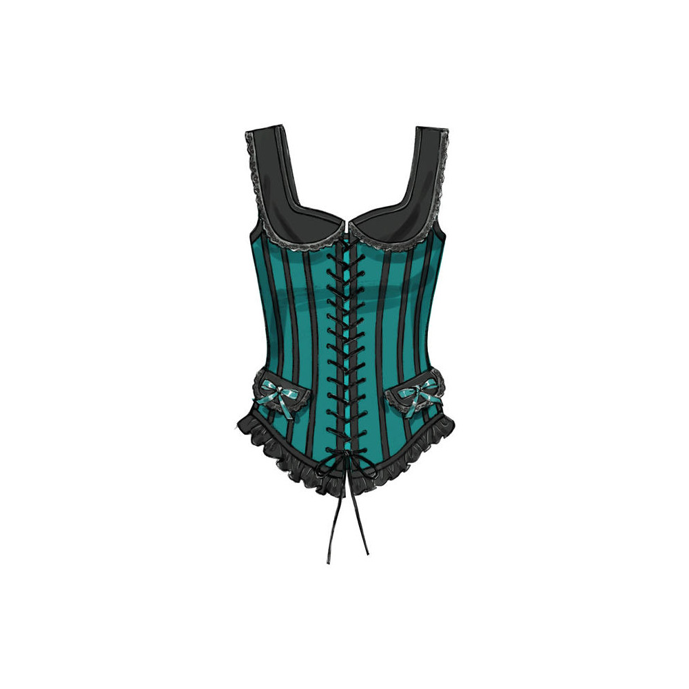 Střih Vogue na přiléhavý korzet s kosticemi, korzetovým zapínáním vpředu a šněrováním na zádech