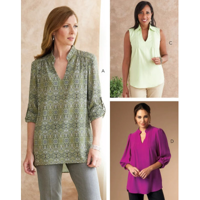 Střih Butterick na halenku se stojáčkem, bez rukávů nebo s variantami rukávů