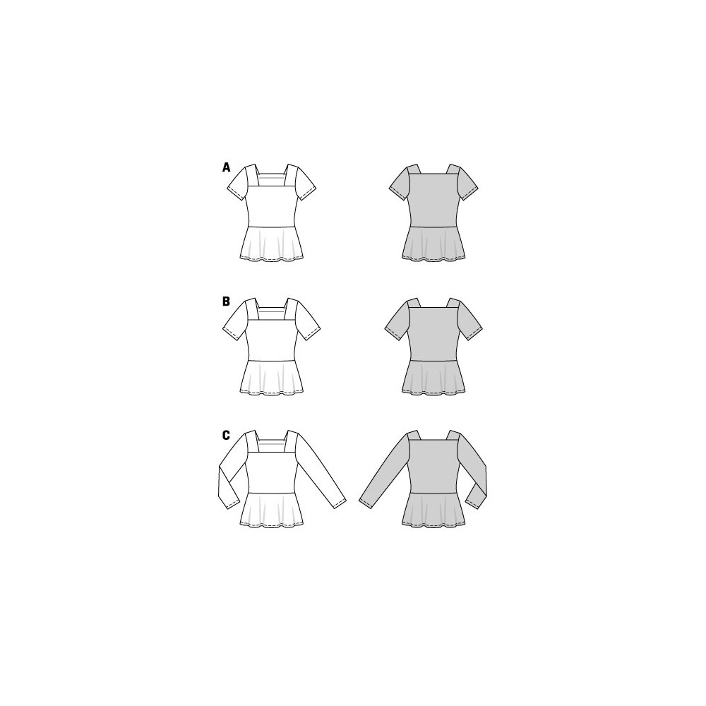 Střih Butterick na zavinovací top se sklady na jednom boku a dlouhými rukávy