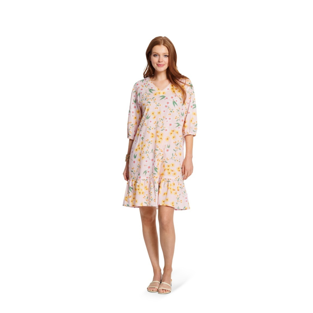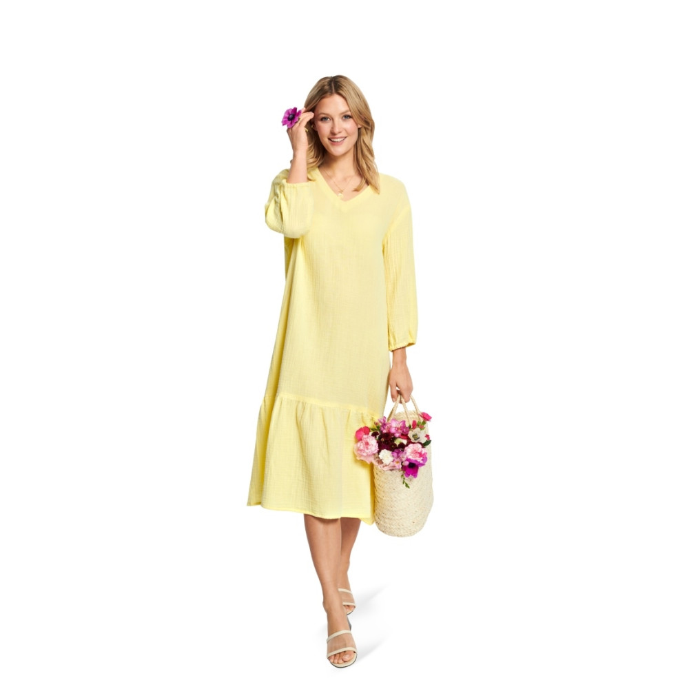 Střih Burda na volné letní šaty bez rukávů s V-výstřihem s volánky (B) a kapsami