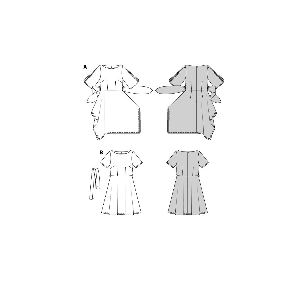 Střih Burda na tunikové šaty s vázáním v pase a na tuniku se širokým rukávem.