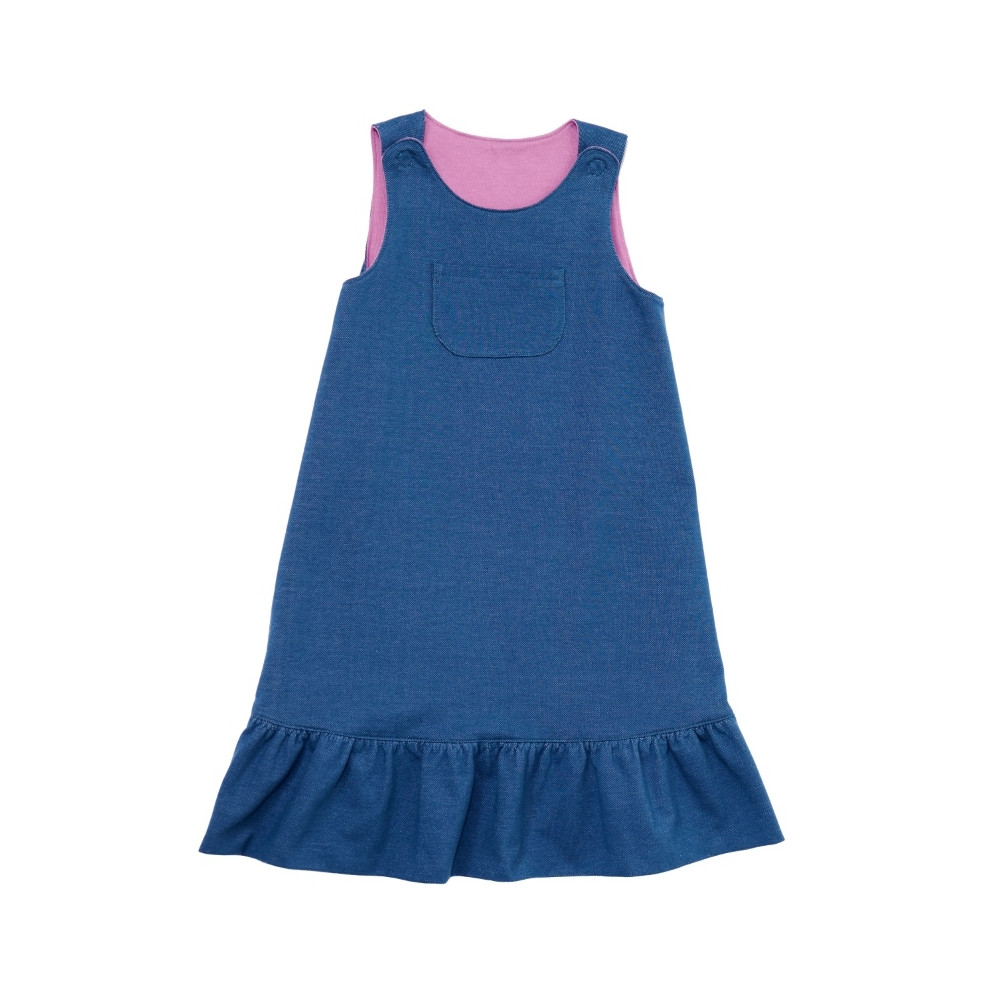 Střih Burda na áčkové šaty se zapínacími ramínky, náprsní kapsou a volánem
