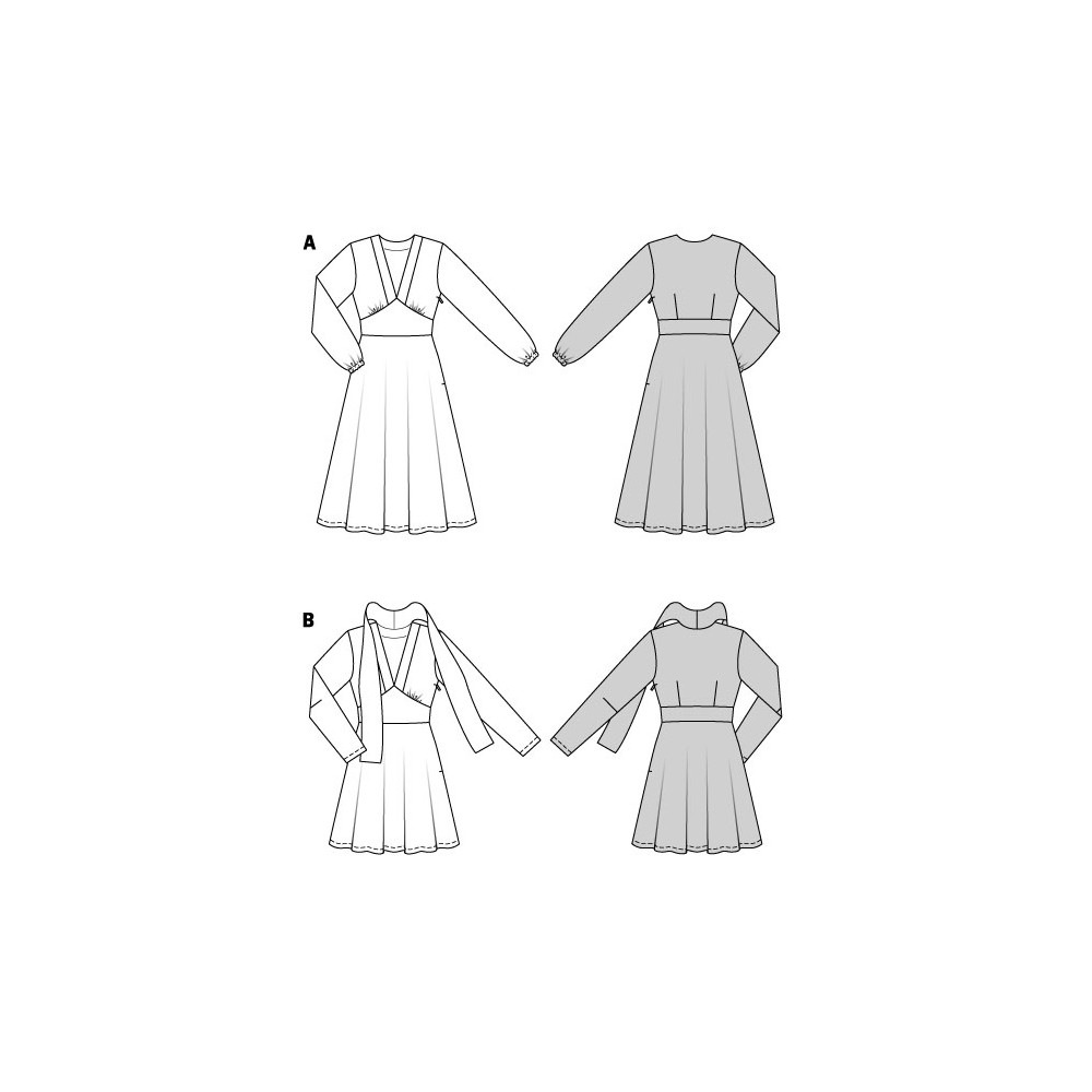 Střih Butterick na zavinovací šaty v různých délkách a s různými variantami rukávů