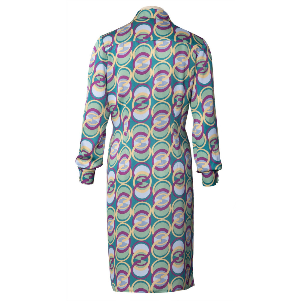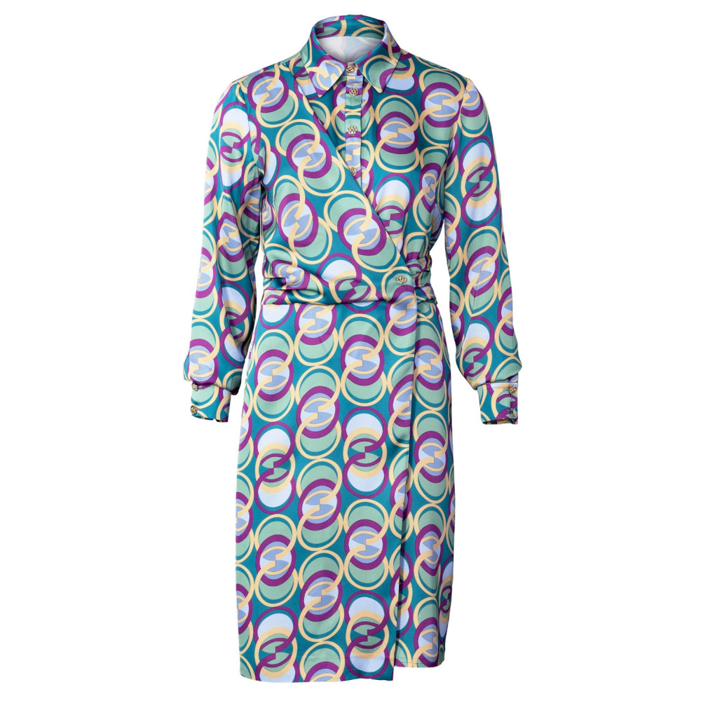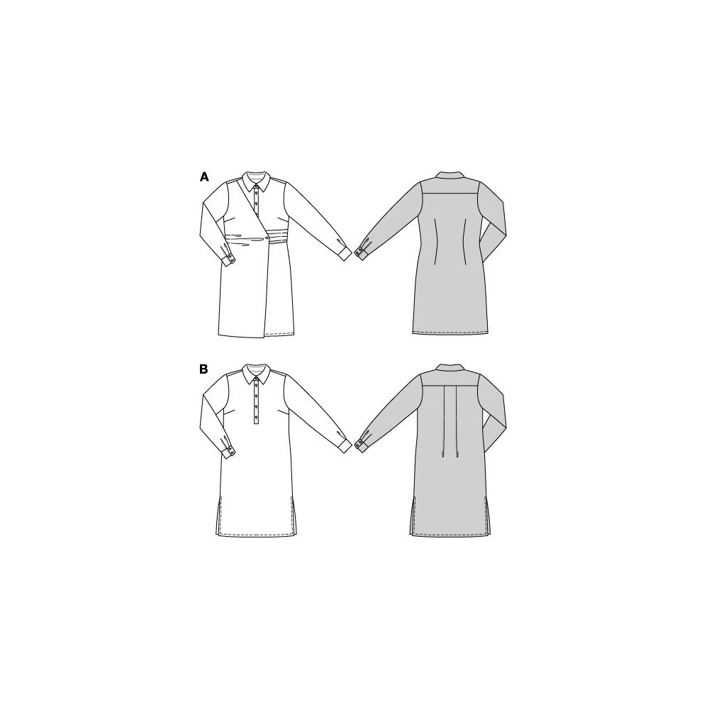 Střih Burda na šaty s límečkem zavinovacím živůtkem, dlouhými rukávy a rozšířenou sukní ve...