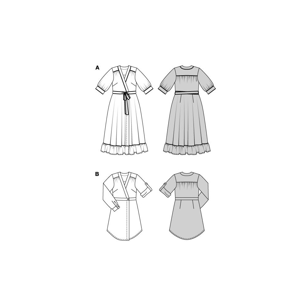 Střih ve velikostech EUR 36-48, úroveň obtížnosti šití: 3 střední info, doporučené látky: slabší bavlněné látky, krepové látky, viskóza