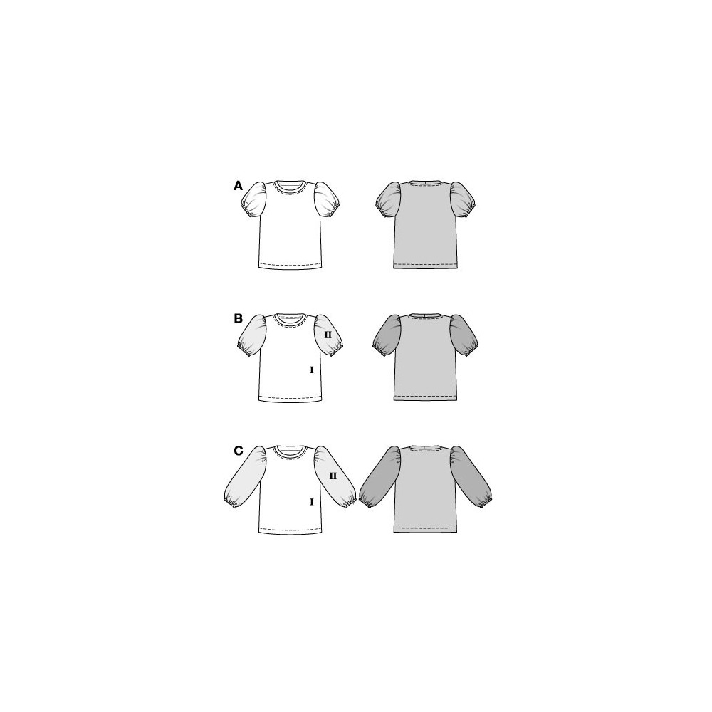 Jednoduchý střih Burda na tričko a mikinu se širokým lemem průkrčníku, variantami rukávů a pasem...
