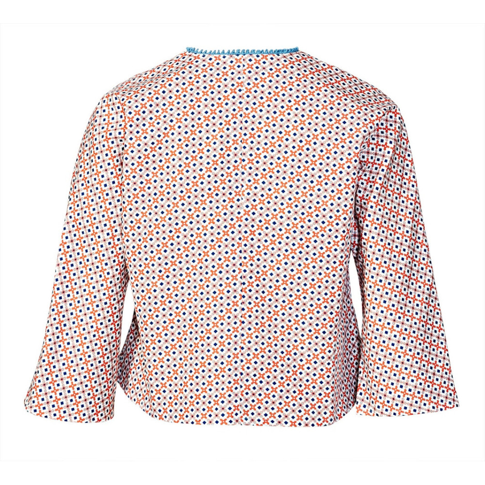 Jednoduchý střih Burda na kabátek bez límce se skrytými bočními kapsami a variantami rukávů