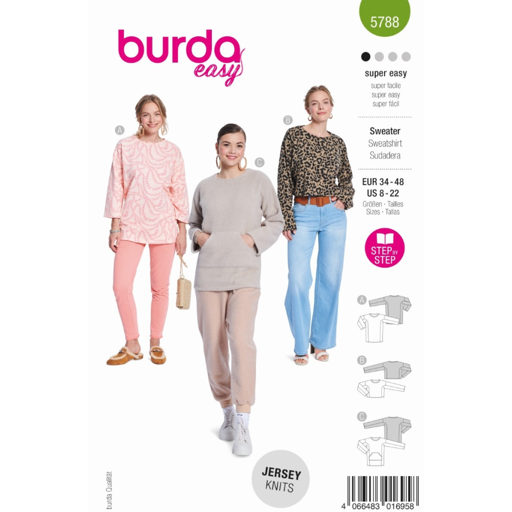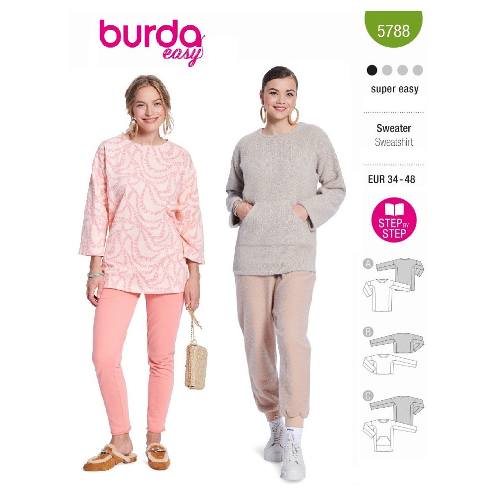 Střih Burda na jednoduchou volnou mikinu / svetr ve třech délkách a variantách.