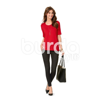 Jednoduchý střih Burda na projmuté tričko s kulatým výstřihem se širokým lemem a variantami rukávů