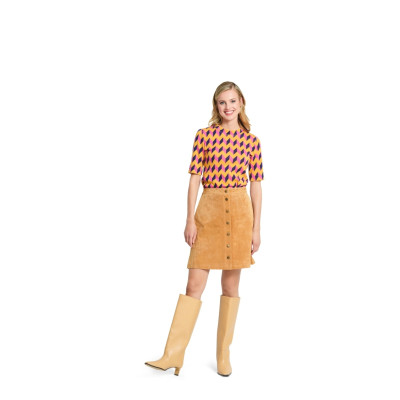Střih Burda na jednoduché delší tričko s kulatým výstřihem, rukávy a bočními rozparky.