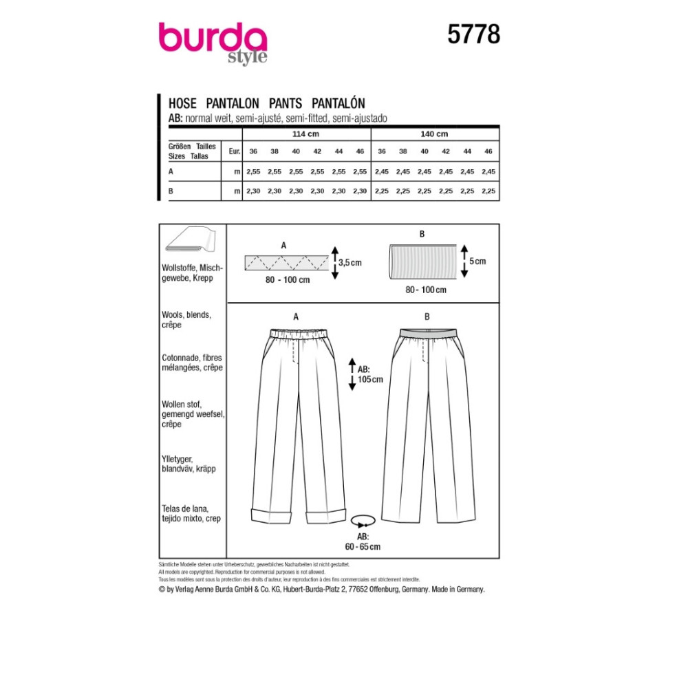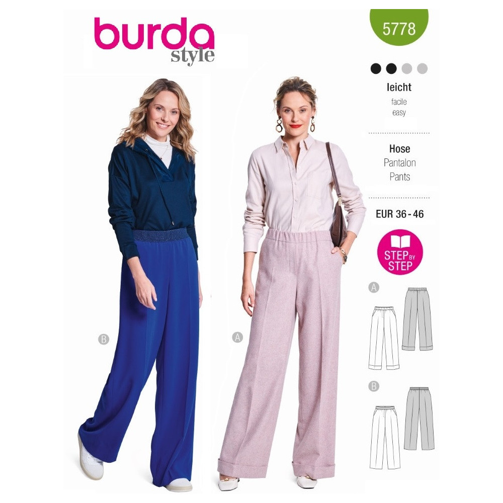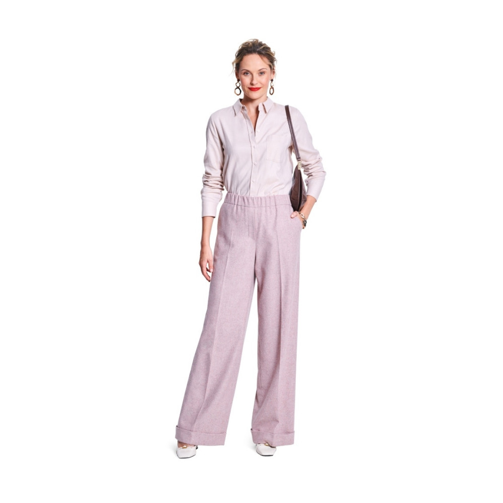 Střih Burda na pohodlné široké volnočasové kalhoty s vysokým nápletem v pase.