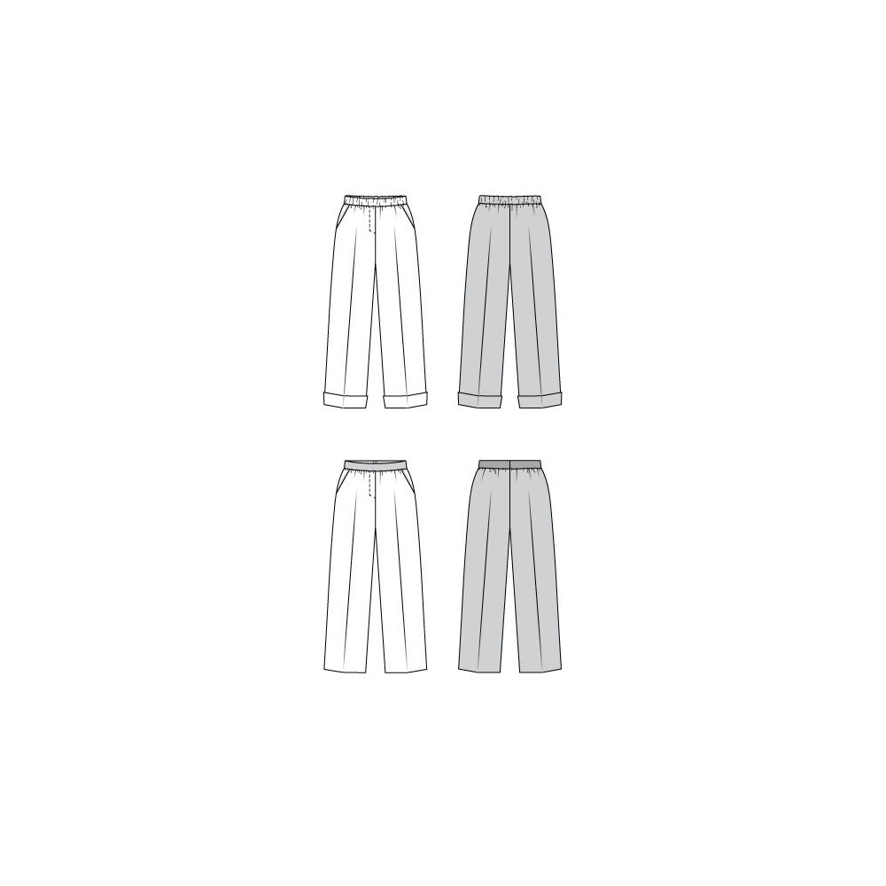 Jednoduchý střih Burda na kalhoty s gumou v pase a širokými nohavicemi s kapsami a šortky