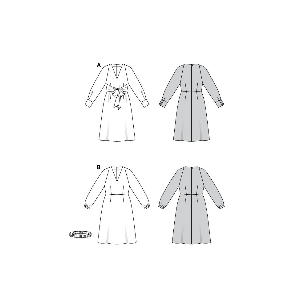 Střih ve velikostech EUR 36-46, úroveň obtížnosti šití: 3 střední info, doporučené látky: krepové látky, viskóza, hedvábí