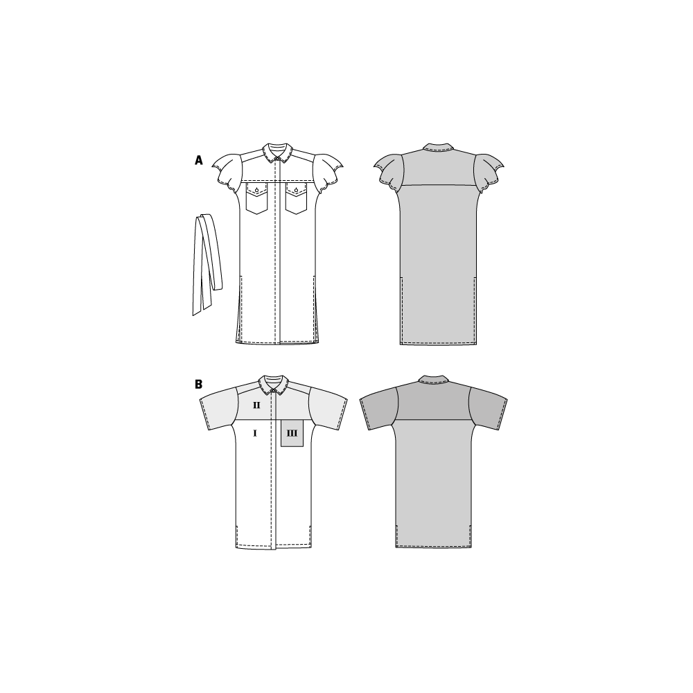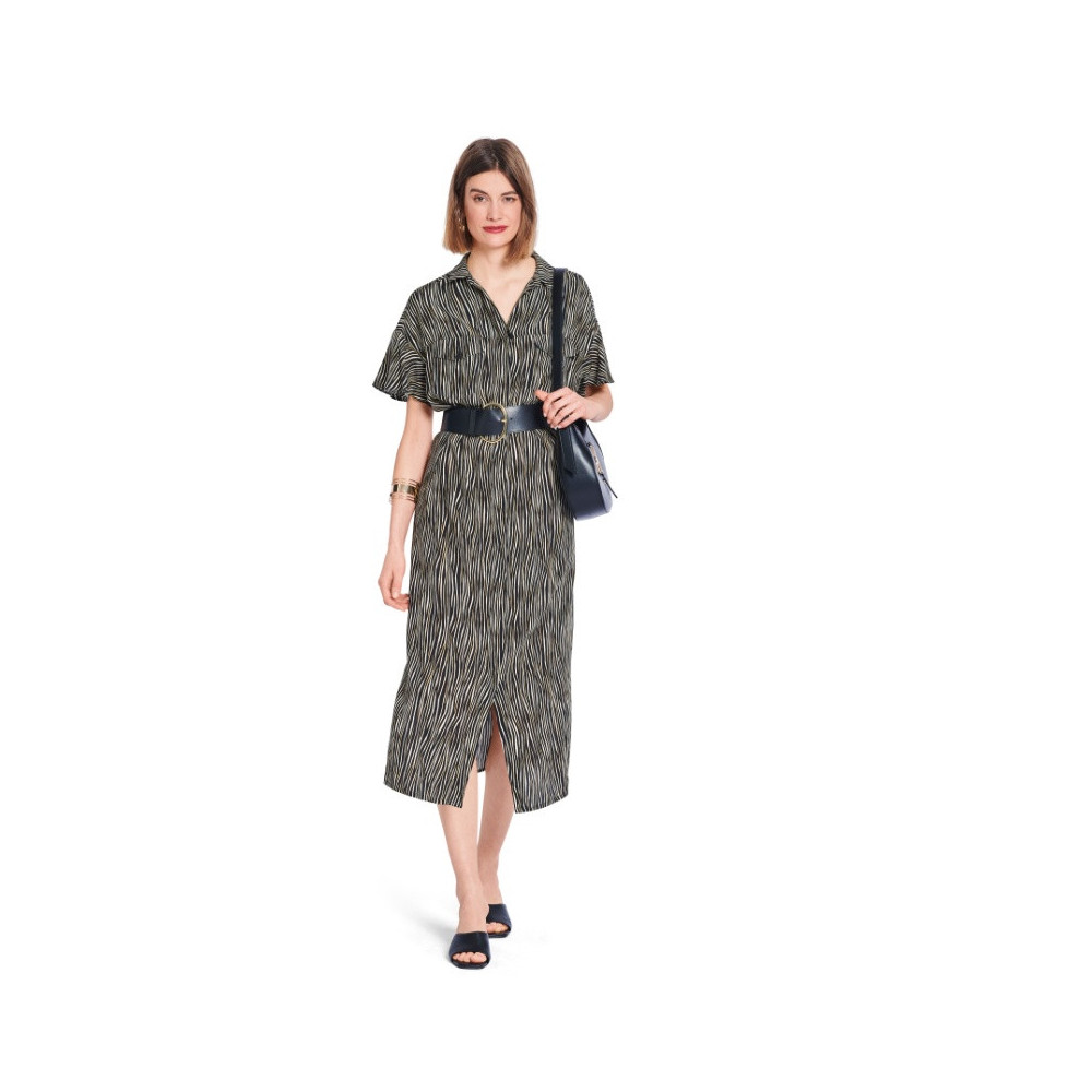 Střih Burda na rovné košilové šaty s bočními rozparky a se zavinovacím efektem