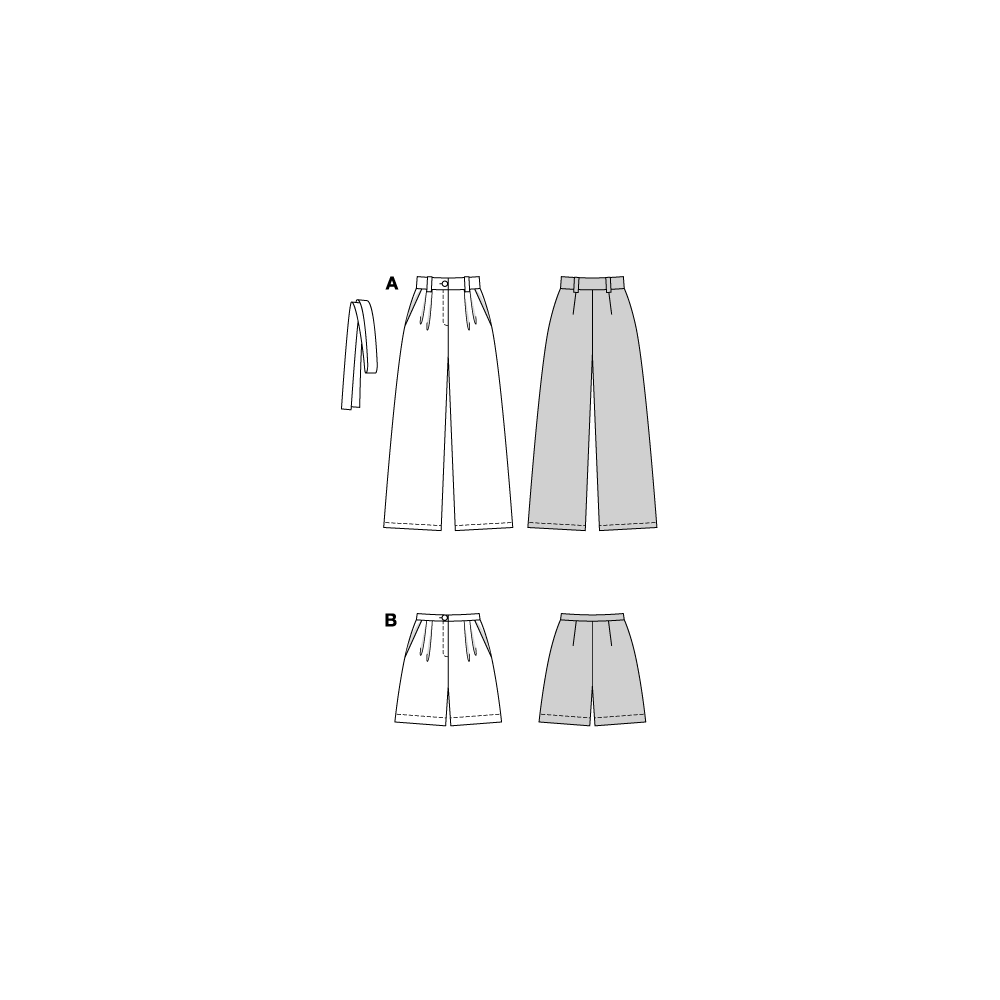 Střih Burda na jednoduché rovné kalhoty a tříčtvrteční kalhoty s malými rozparky.