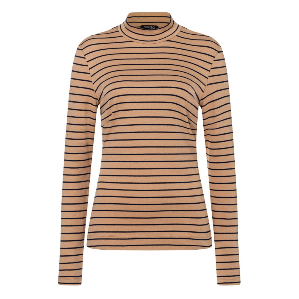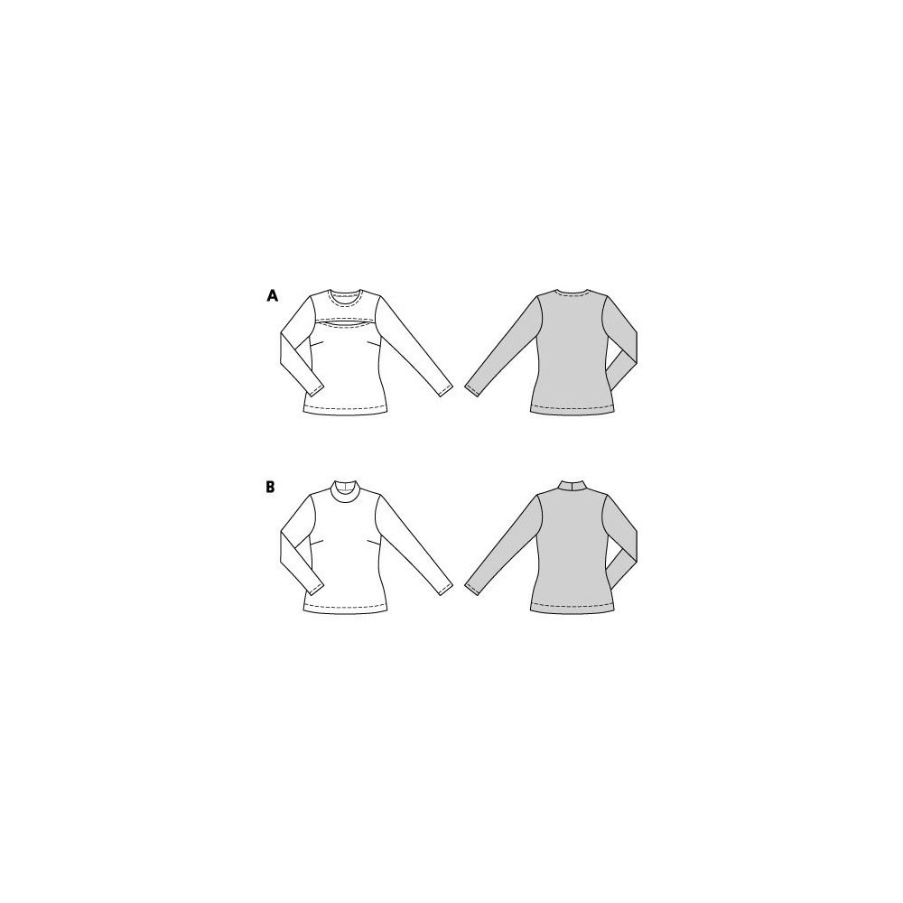 Střih Burda na pletený upnutý top s dlouhým rukávem, kapucí nebo ozdobným překřížením v dekoltu