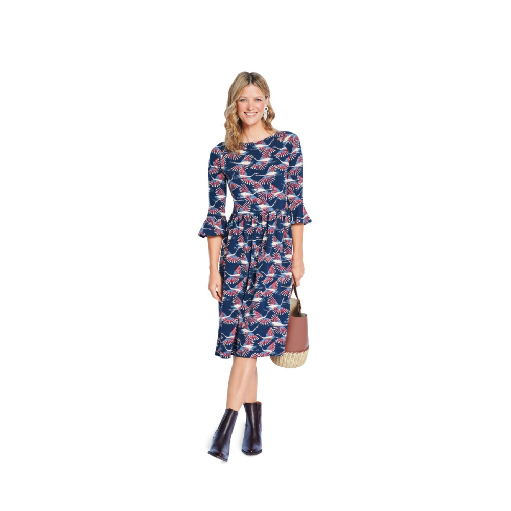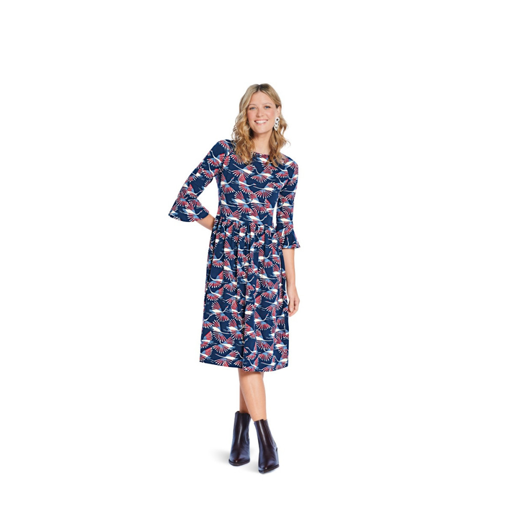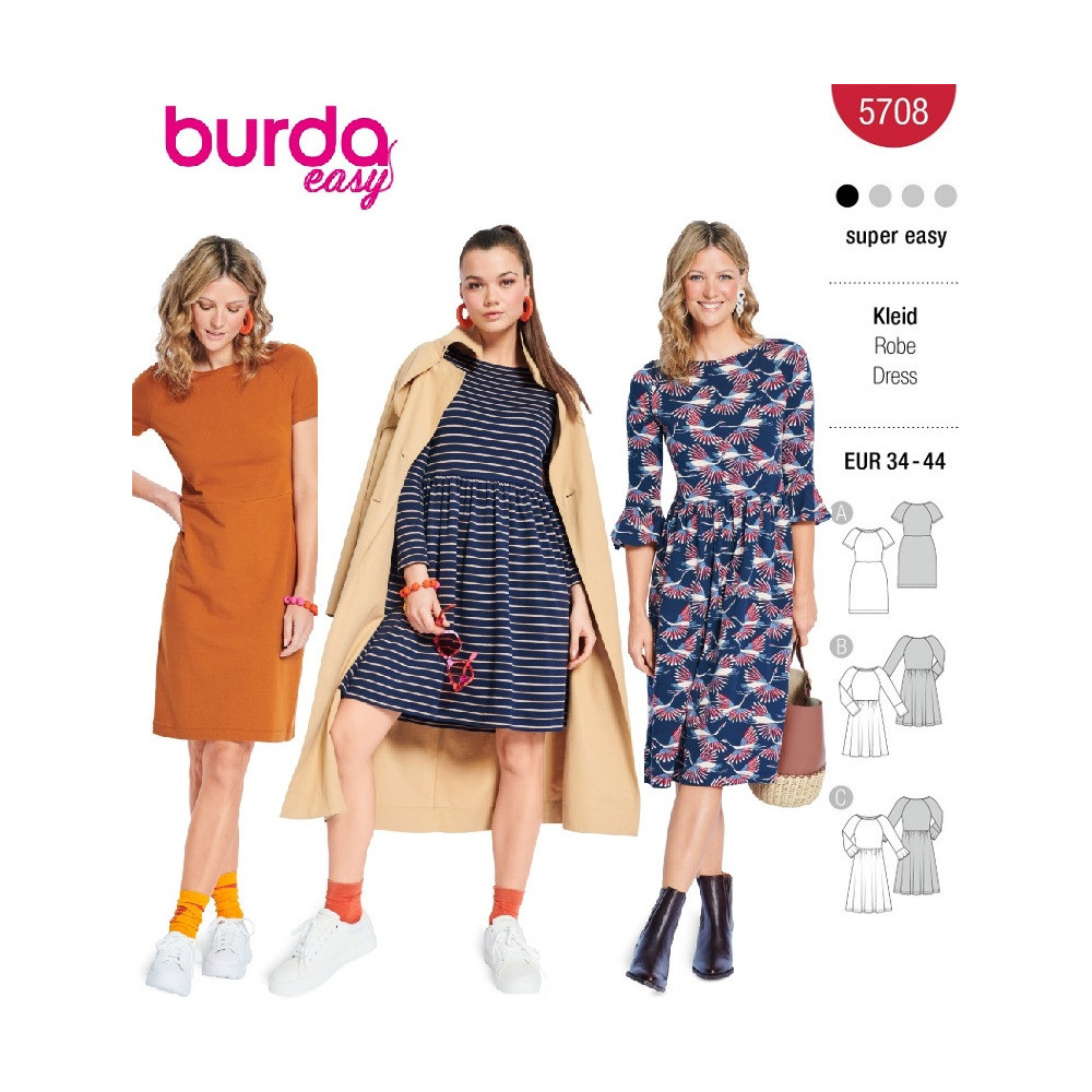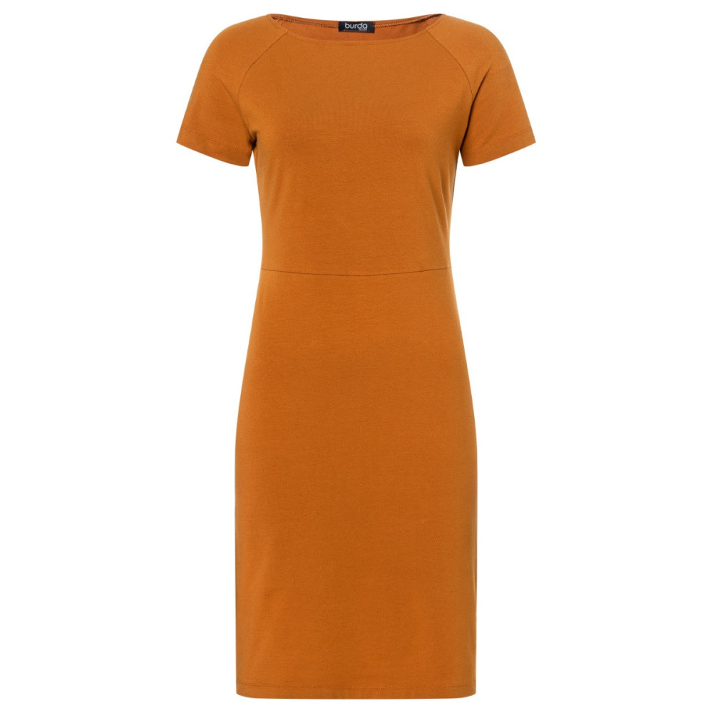Jednoduchý střih Burda na rovné šaty s lodičkovým výstřihem a variantami sukně a rukávů
