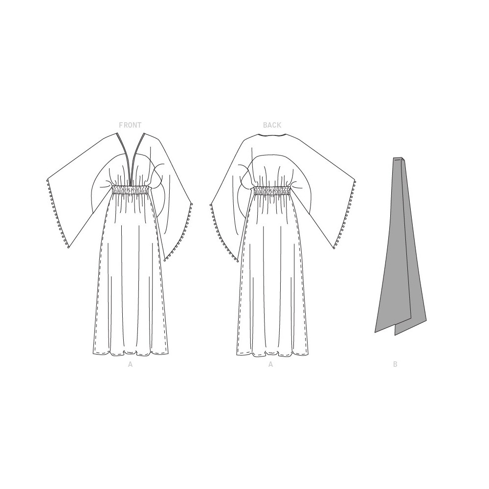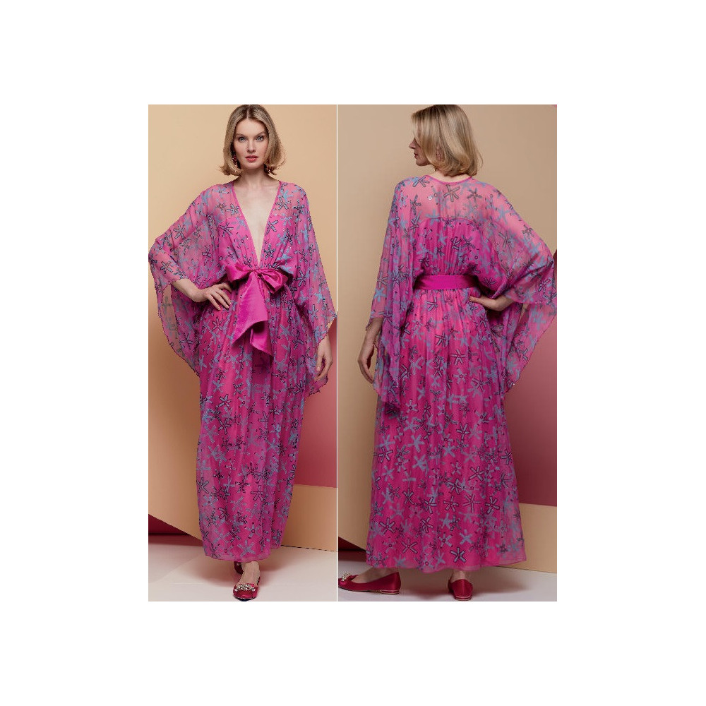 Návrhářský střih Vogue na šaty s hlubokým V-výstřihem, kimonovými rukávy a páskem