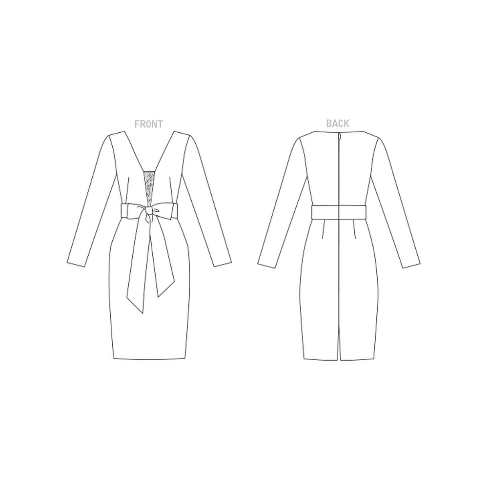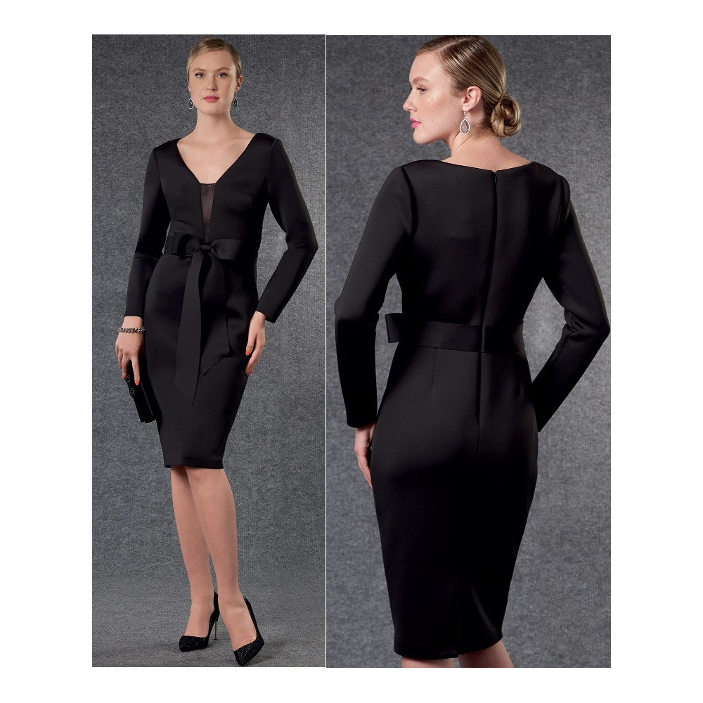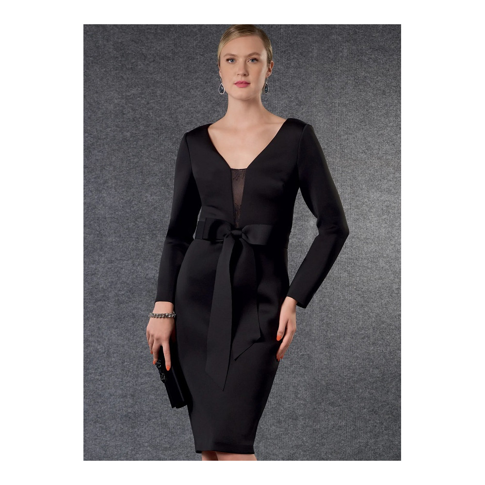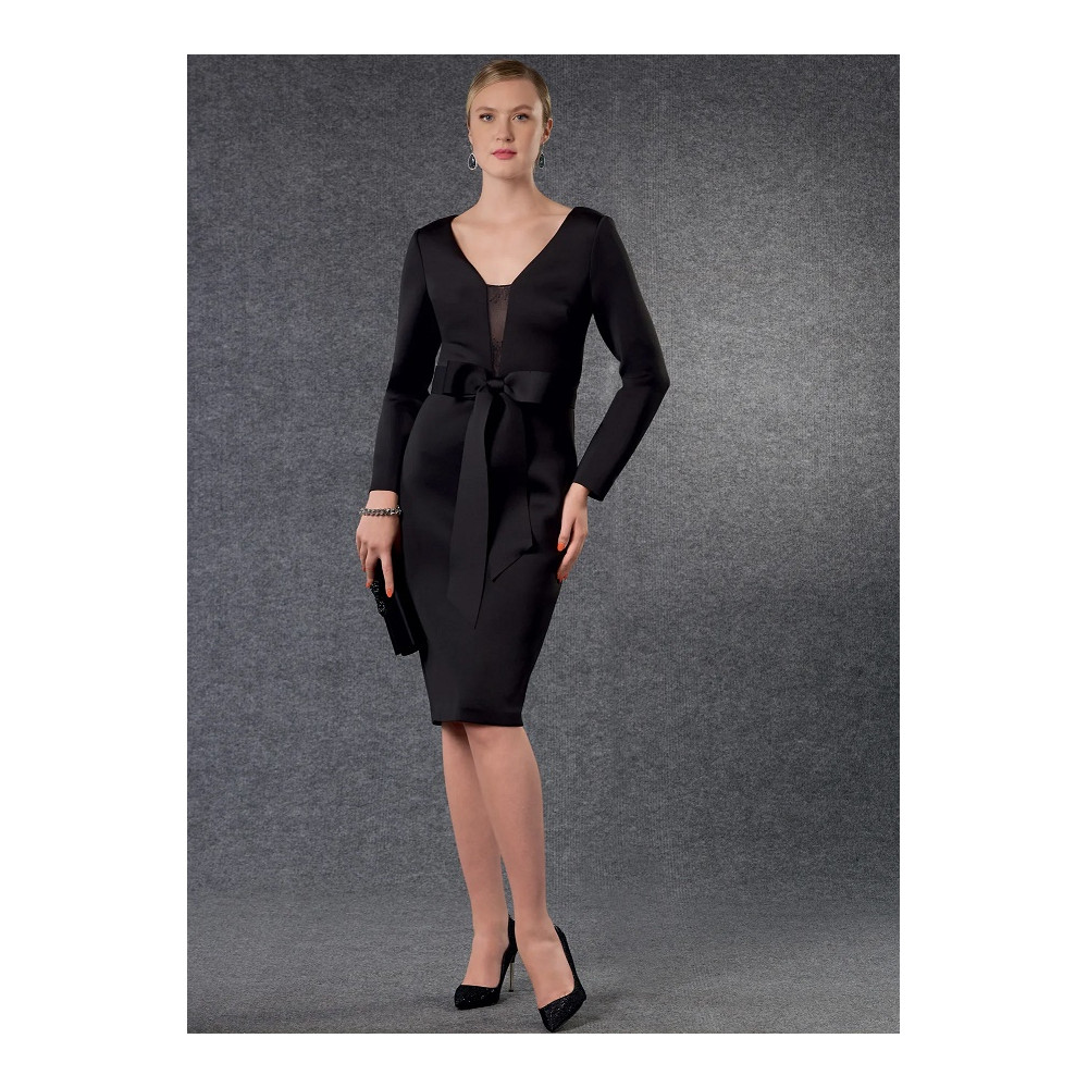 Návrhářský střih Vogue na pouzdrové šaty s hlubokým výstřihem s transparentní vsadkou