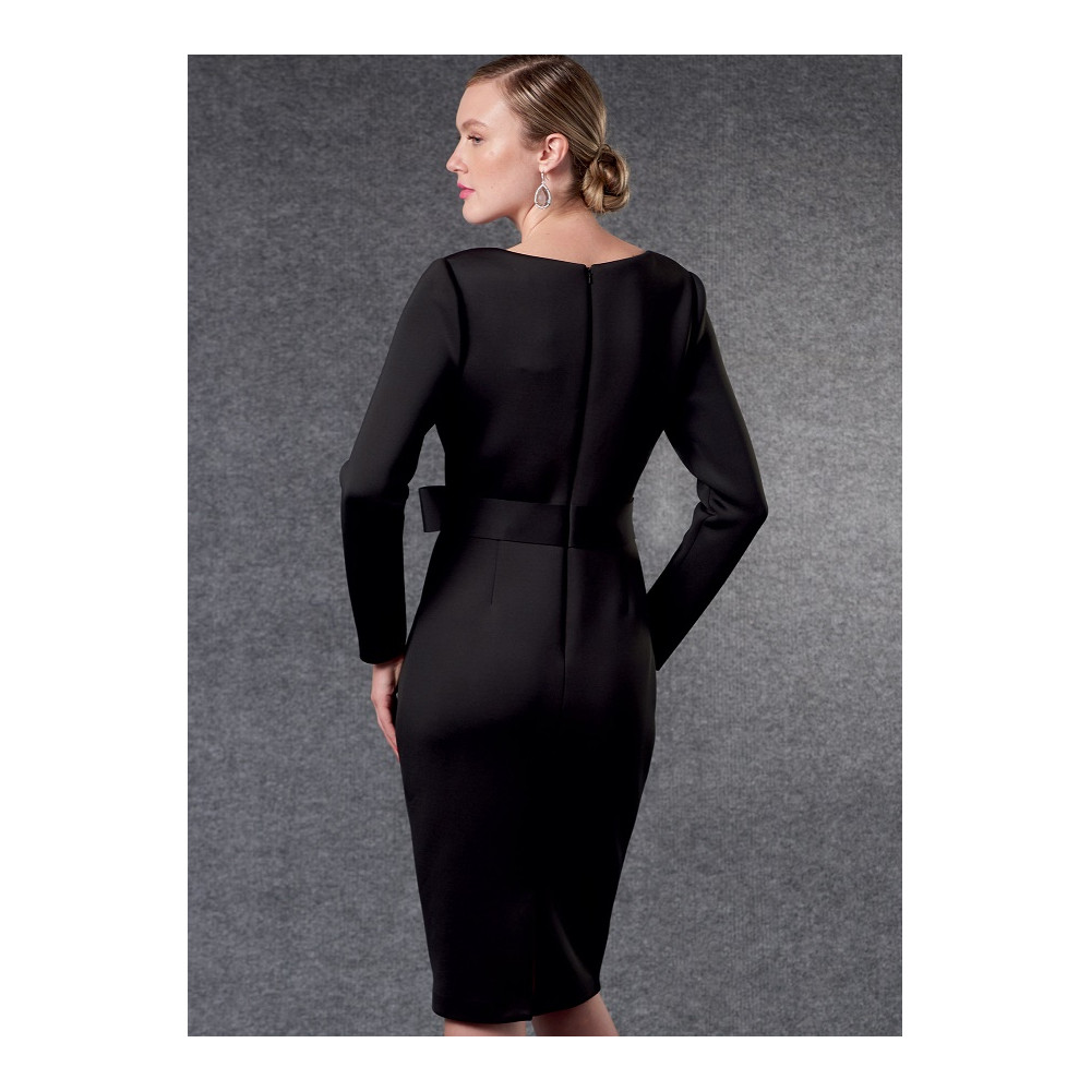 Návrhářský střih Vogue na šaty s lodičkovým výstřihem, variantami rukávů a nařaseným drapé