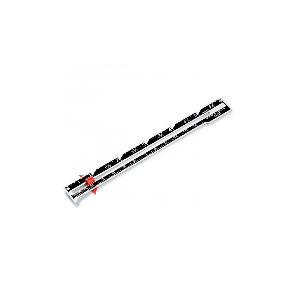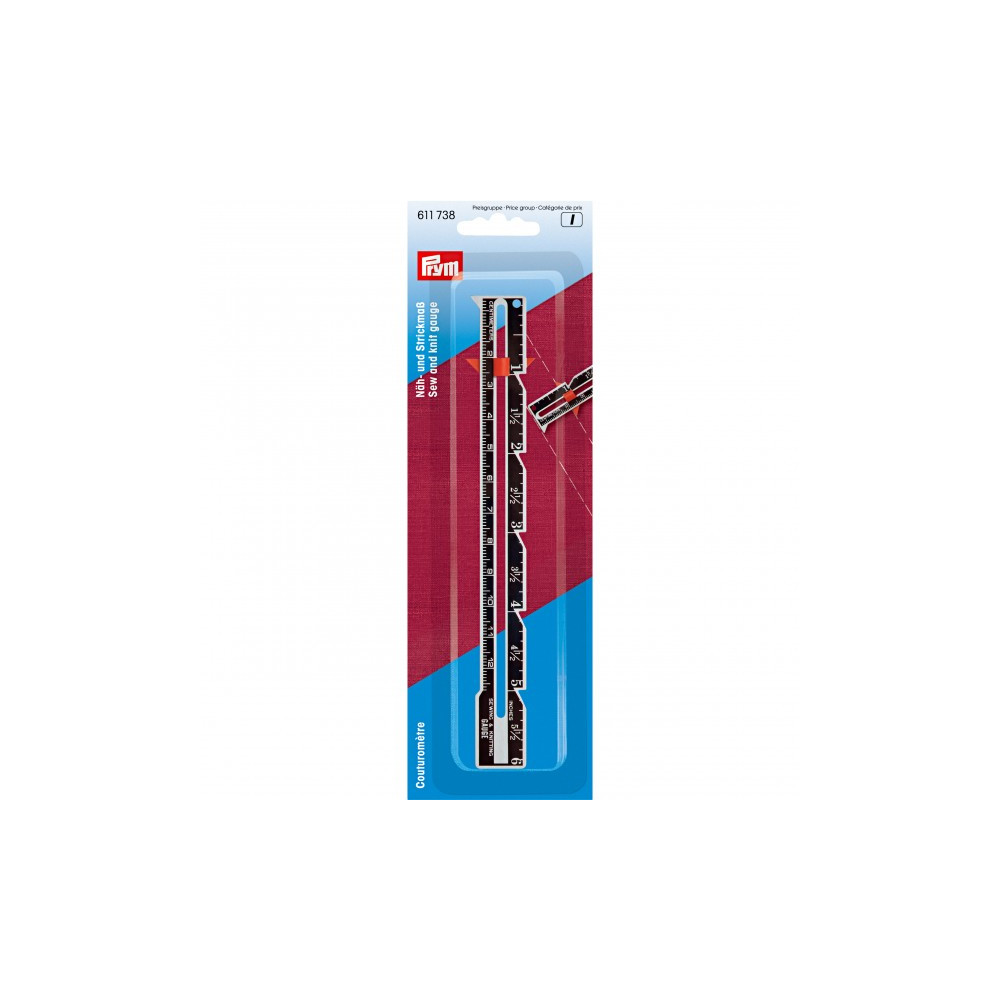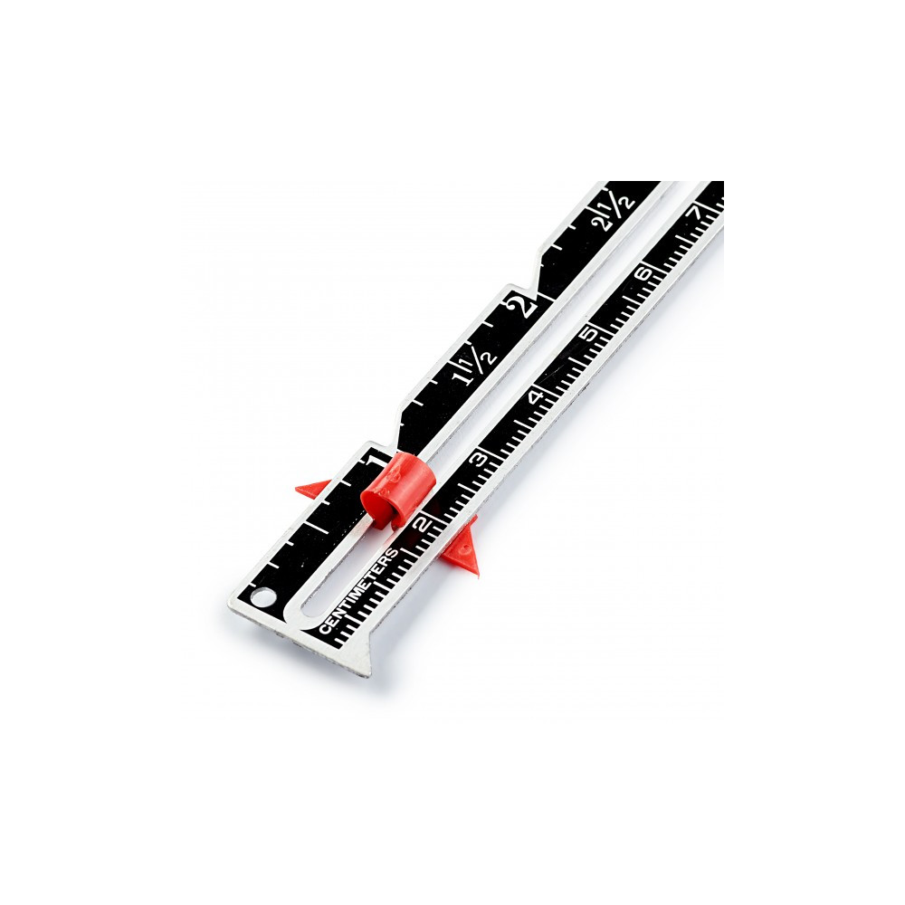 Více se dočtete v popisuKovové ruční měřidlo usnadňuje mnoho měřících a zaměřovacích úkonů. Pomocí červeného posuvníku lze nastavit rozměr švu, záložky nebo knoflíkové dírky a následně jej přenést.