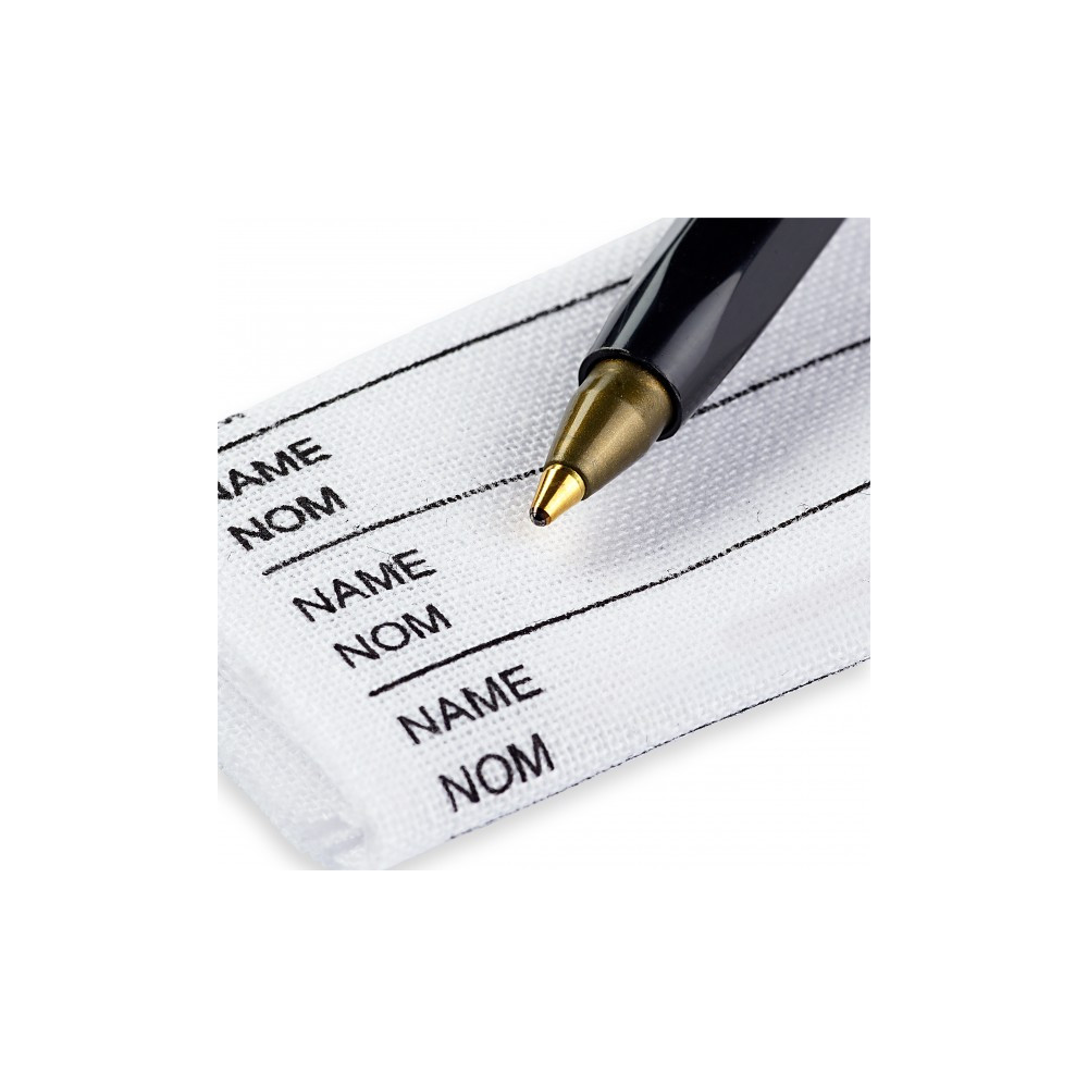 Více se dočtete v popisuJmenovky (100% bavlna) se nažehlí na oblečení, poté se mohou popsat černým permanentním perem. Jmenovky lze prát až na 95°C.