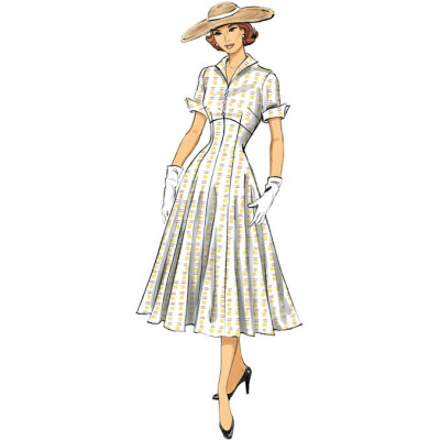 Střih Butterick na retro košilové šaty (z roku 1952) se širokou sukní