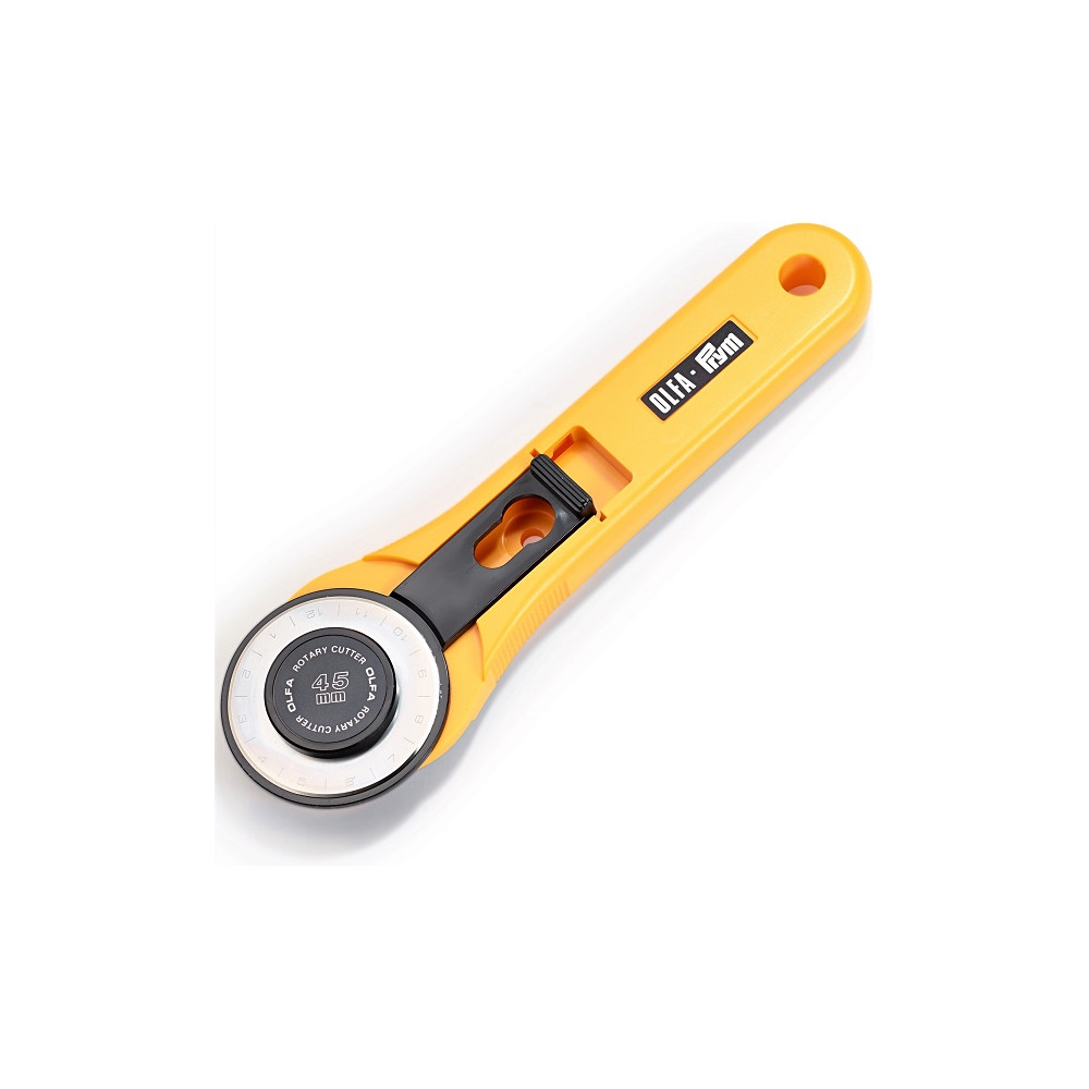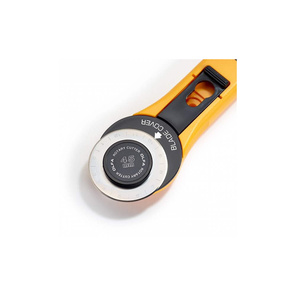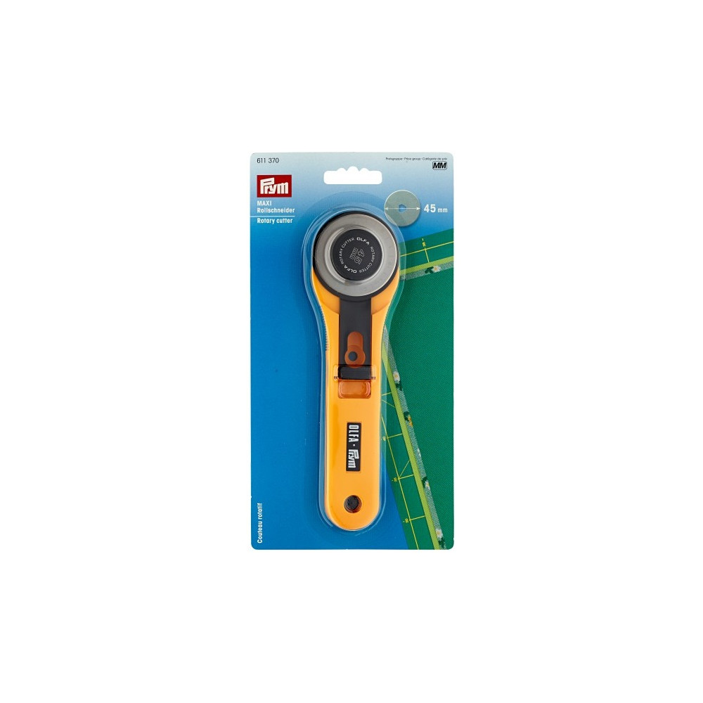 Více se dočtete v popisuRotační řezací kolečko (Ø 45 mm) MAXI od firmy OLFA je nepostradatelnou pomůckou při šití, patchworku a dalších kreativních pracích. Ostrá čepel kolečka prořízne i několik vrstev látky najednou (4 až 8 dle druhu látky) s milimetrovou přesností. Kolečkem lze řezat dopředu i dozadu. Další předností řezacího kolečka je jeho patentovaný bezpečnostní systém - po použití se kolečko jednoduše zasune do bezpečností polohy, ostří kolečka je zakryto, nehrozí tak jeho poškození ani zranění uživatele. Řezák je vhodný pro praváky i leváky.