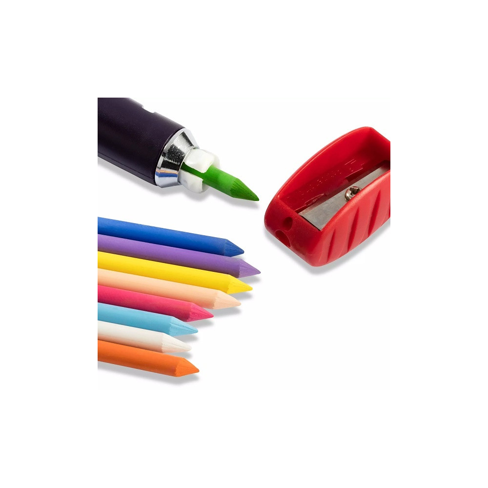 Mechanická tužka na křídy s integrovanou gumou, ořezávátkem a 16 náhradními křídami