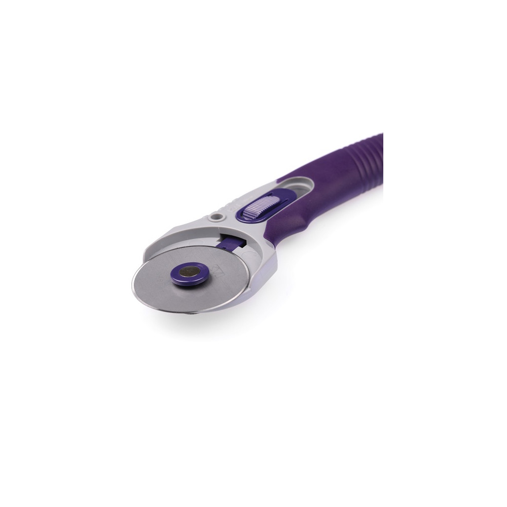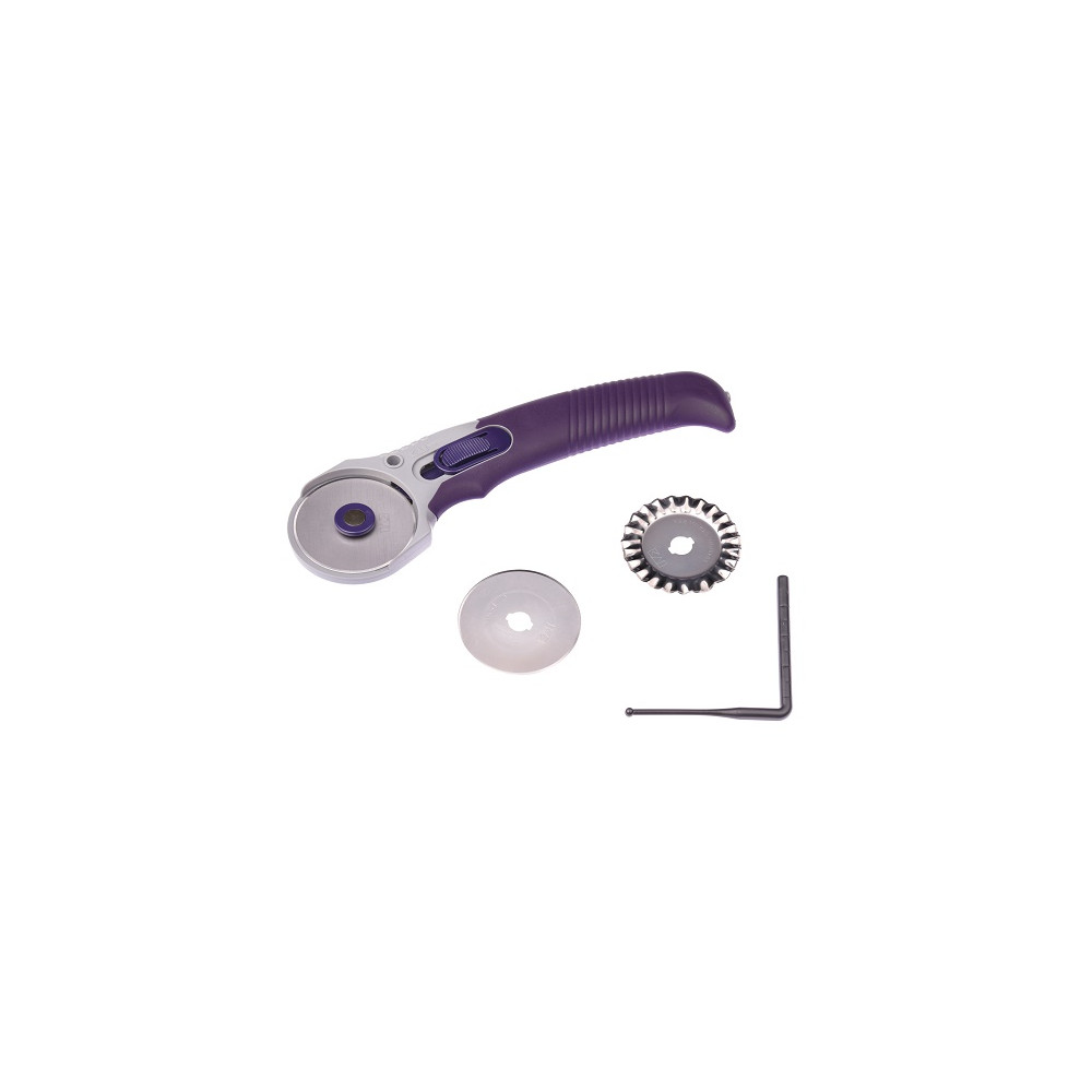 Více se dočtete v popisuRotační řezací kolečko (Ø 45 mm) MULTI od firmy KAI je nepostradatelnou pomůckou při šití, patchworku a dalších kreativních pracích. Ostrá čepel kolečka prořízne i několik vrstev látky najednou (4 až 8 dle druhu látky) s milimetrovou přesností. Kolečkem lze řezat dopředu i dozadu. Ergonomická pogumovaná rukojeť (vyrobena v Japonsku) zabraňuje vyklouznutí řezáku. Další předností řezacího kolečka je jeho patentovaný bezpečnostní systém - po použití se kolečko jednoduše zasune do bezpečností polohy, ostří kolečka je zakryto, nehrozí tak jeho poškození ani zranění uživatele. Řezák je vhodný pro praváky i leváky.