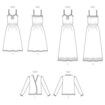 Střih Butterick na retro šaty (80. léta) na ramínka s gumou v pase a zavinovací sako