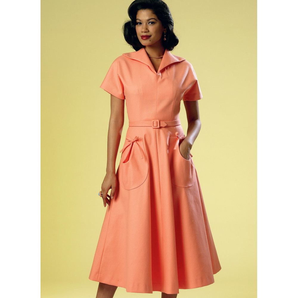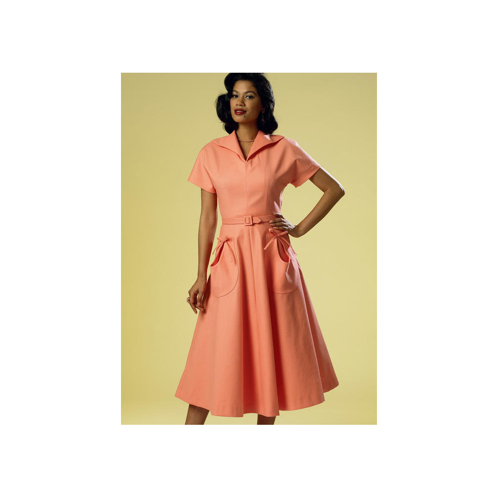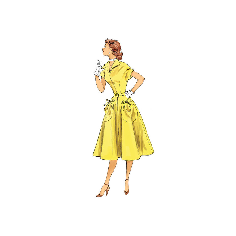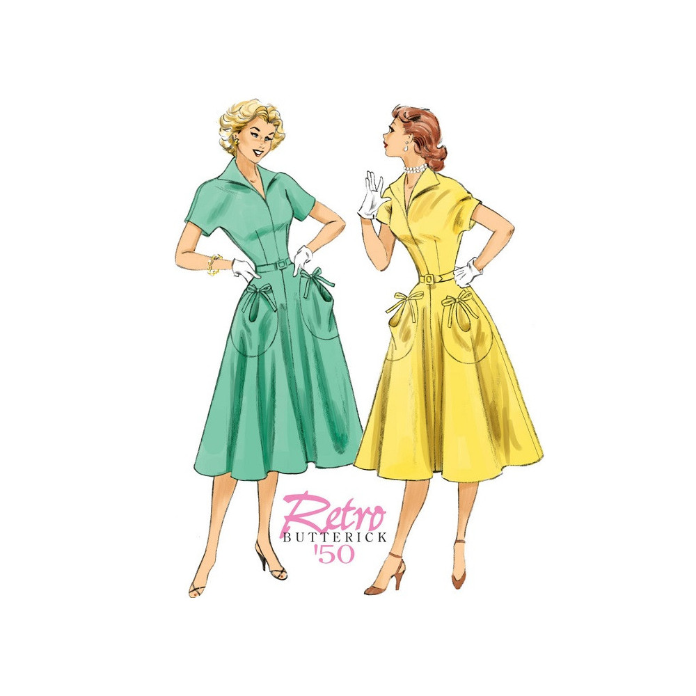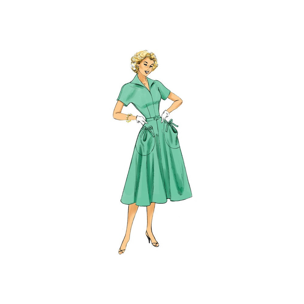 Střih Butterick na retro tričkové šaty (z roku 1950) s límečkem a širokou sukní s kapsami