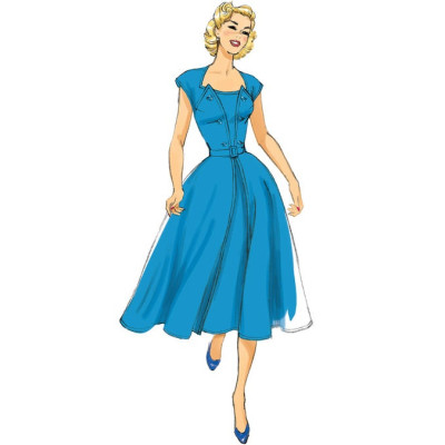 Střih Butterick na retro šaty (z roku 1953) s dvouvrstvým efektem a páskem