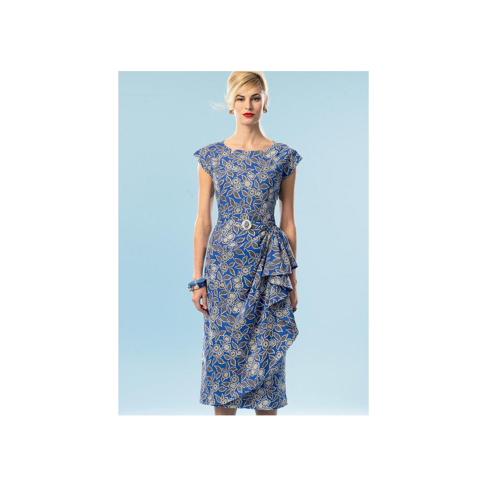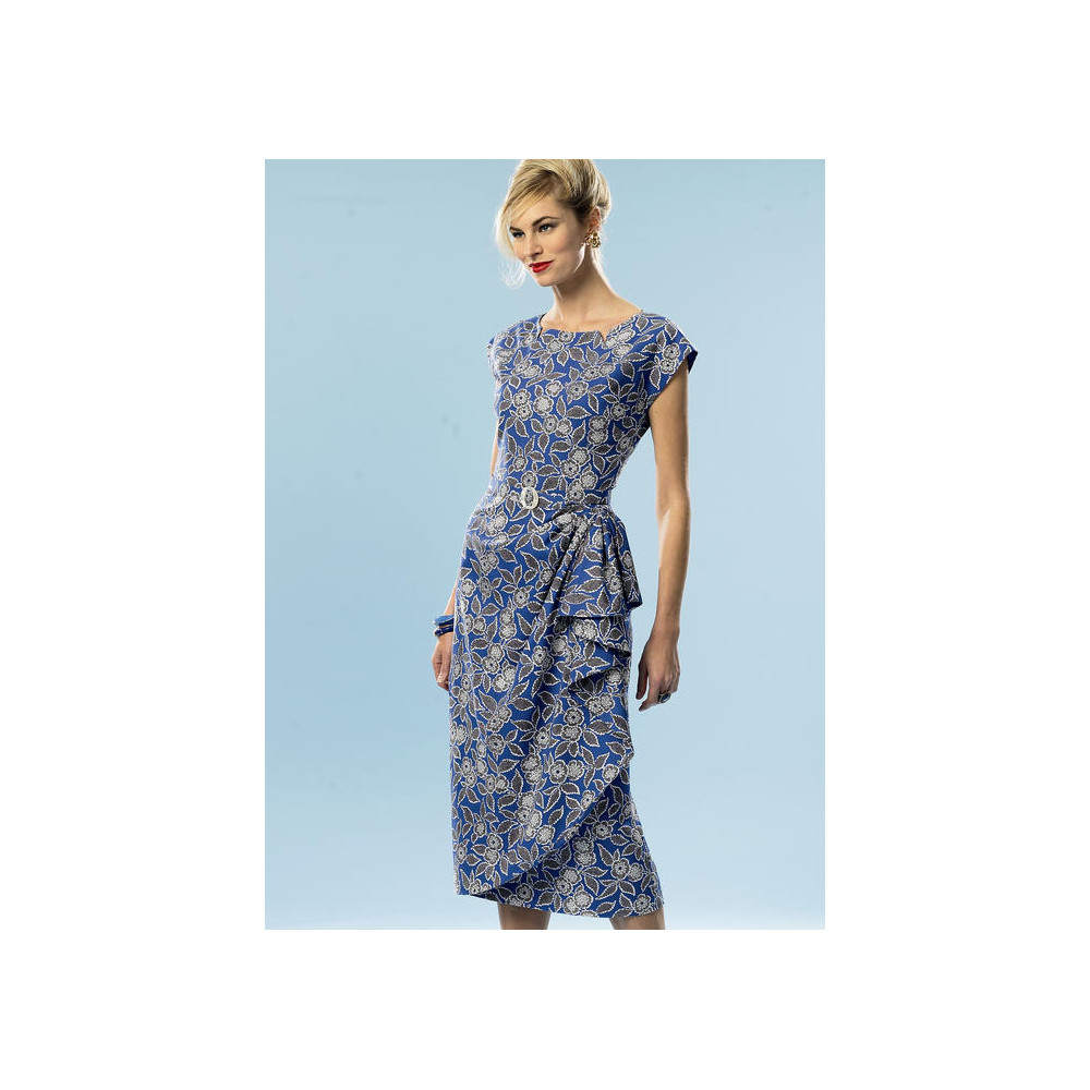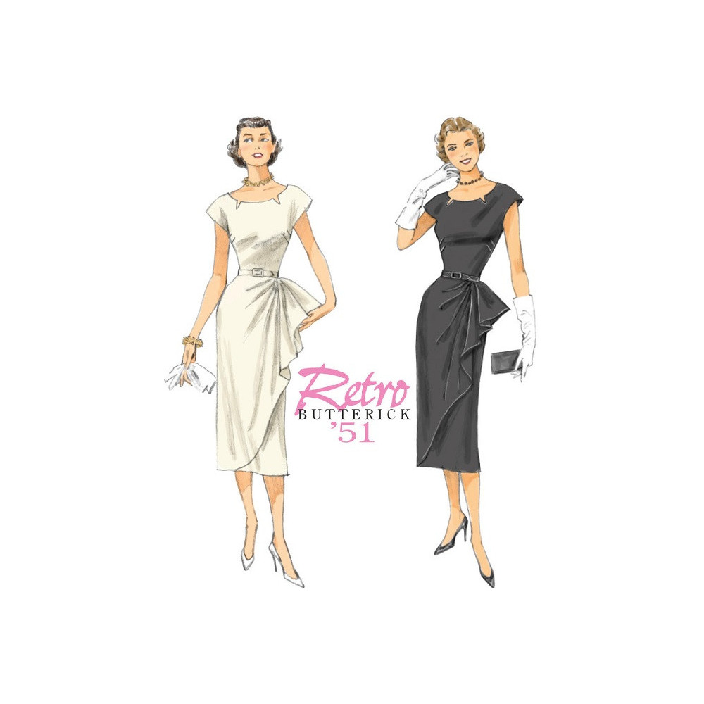 Střih Butterick na retro pouzdrové šaty (z roku 1951) s volánem na levém boku