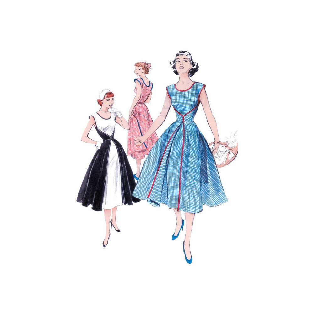 Velmi jednoduchý střih Butterick na retro zavinovací šaty bez rukávů (z roku 1952)