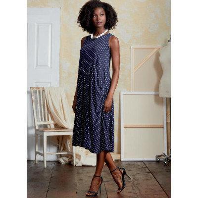 Střih Vogue na tričkové šaty s asymetrickou sukní a kardigan se šálovým límcem