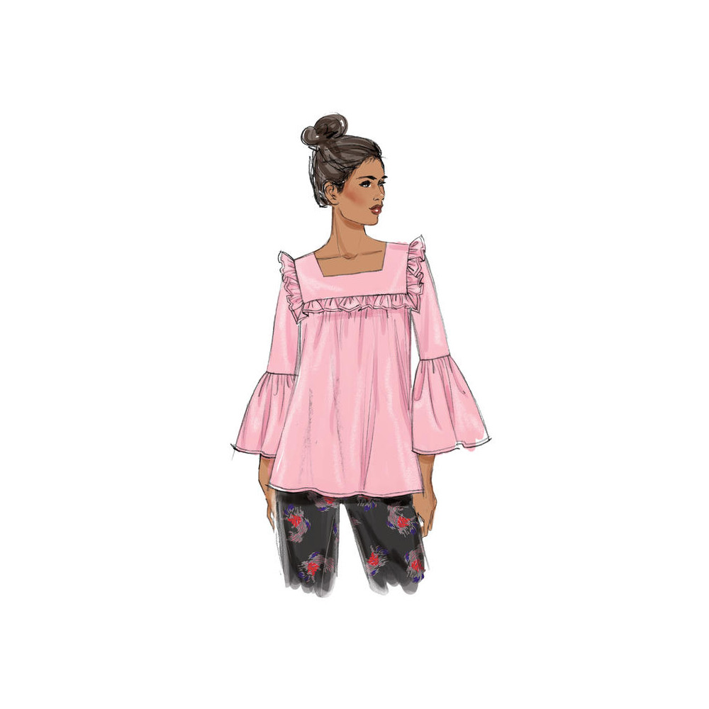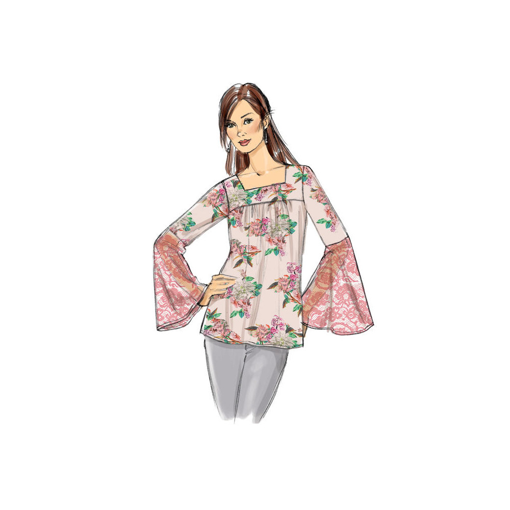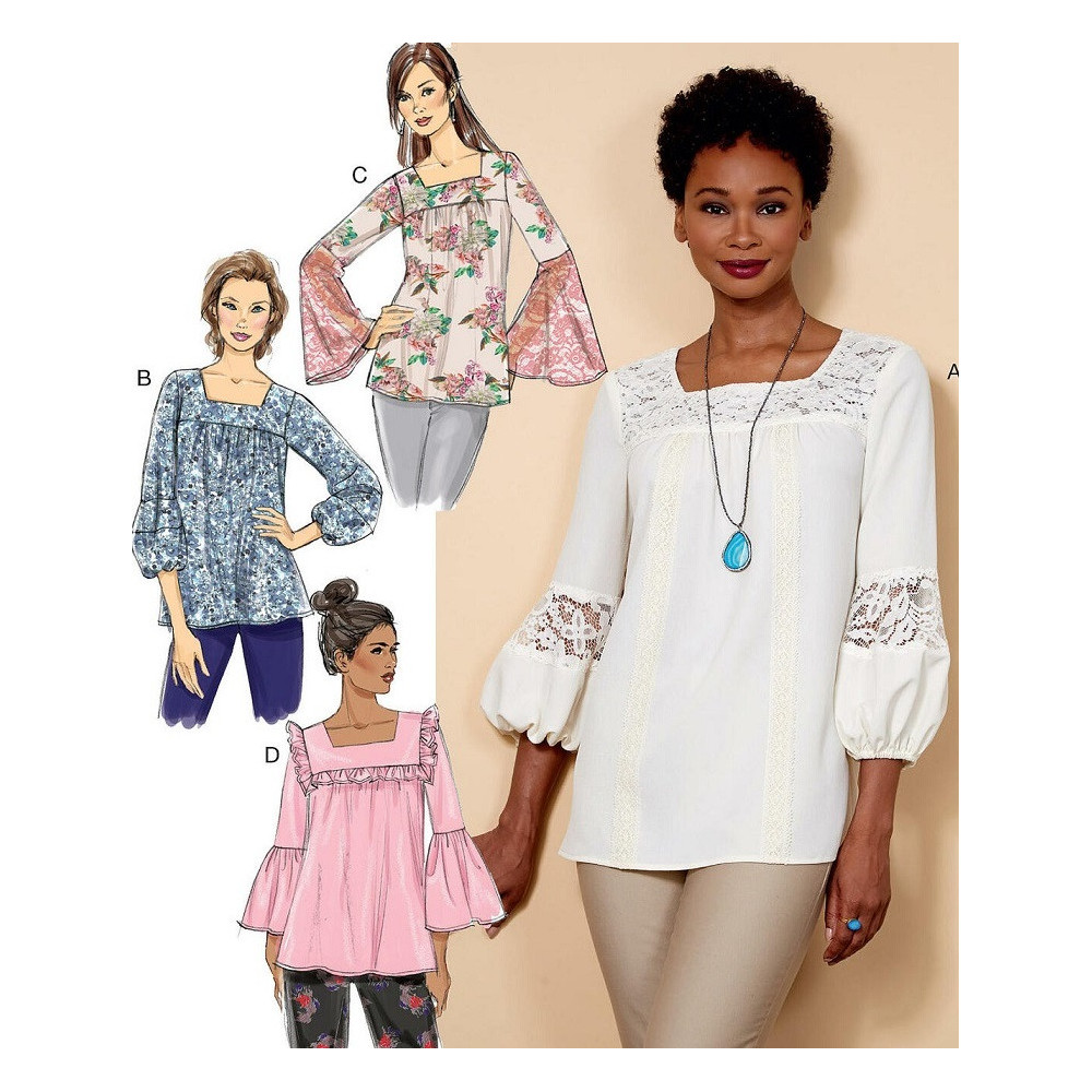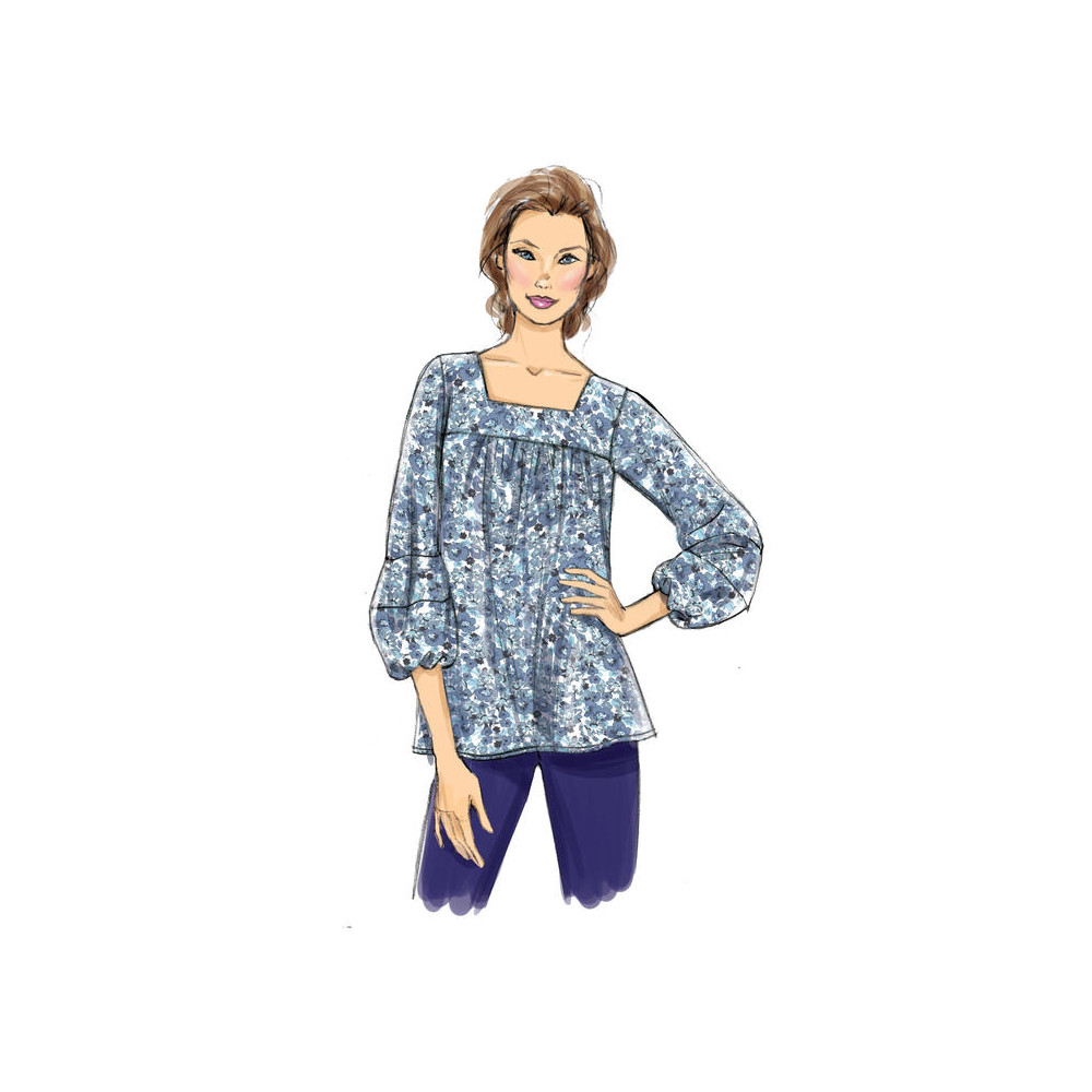 Střih Butterick na halenku s hranatým výstřihem a variacemi nabíraných rukávů