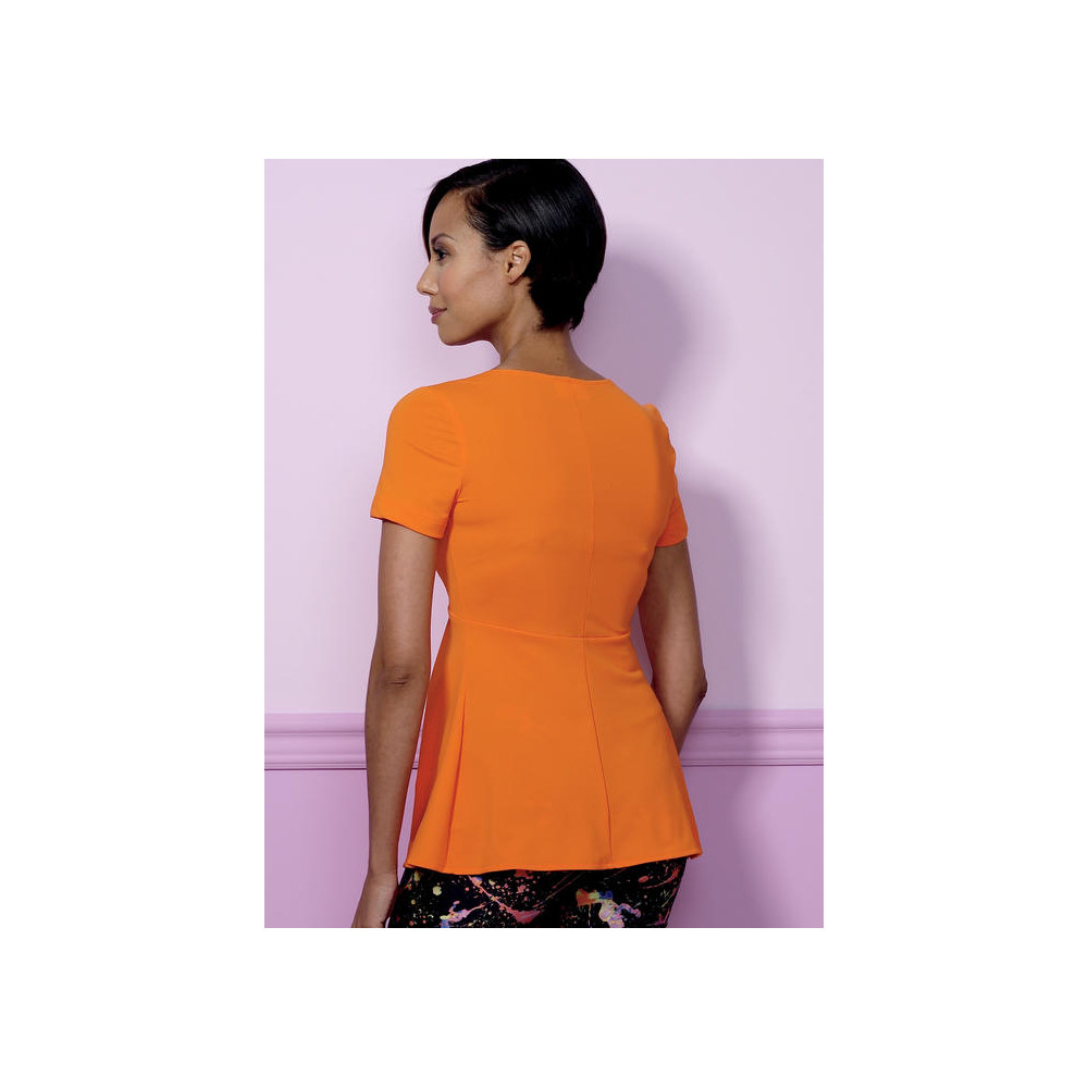 Střih Vogue na komplet topu s efektem vesty s klopovým asymetrickým límcem, patkami a skrytým...
