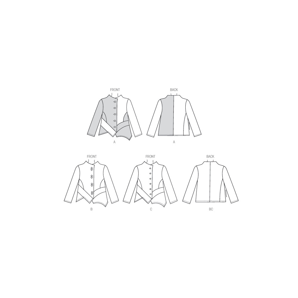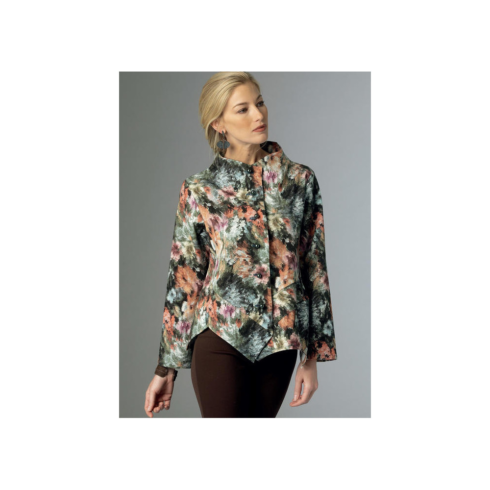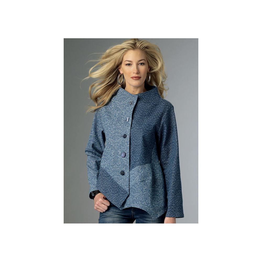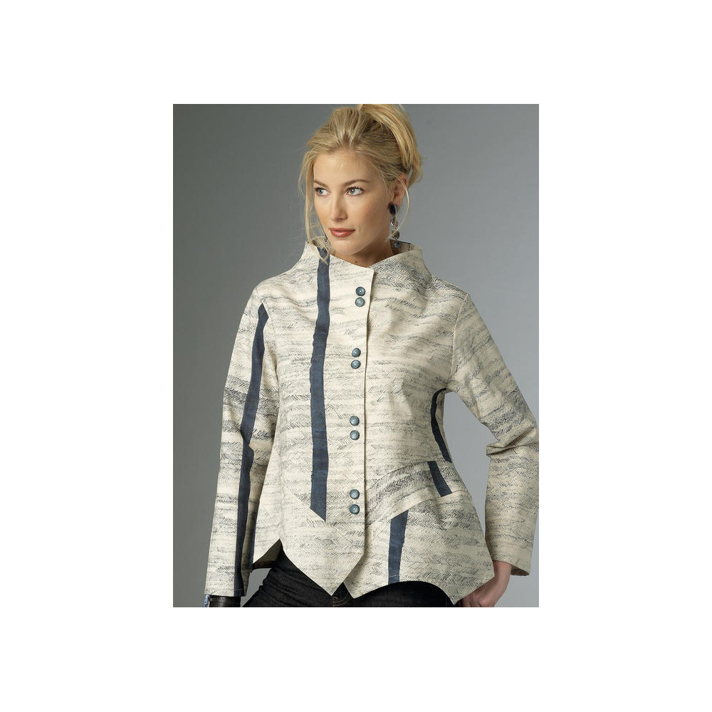 Střih Butterick na zajímavé asymetricky řešené volné sako se stojáčkem