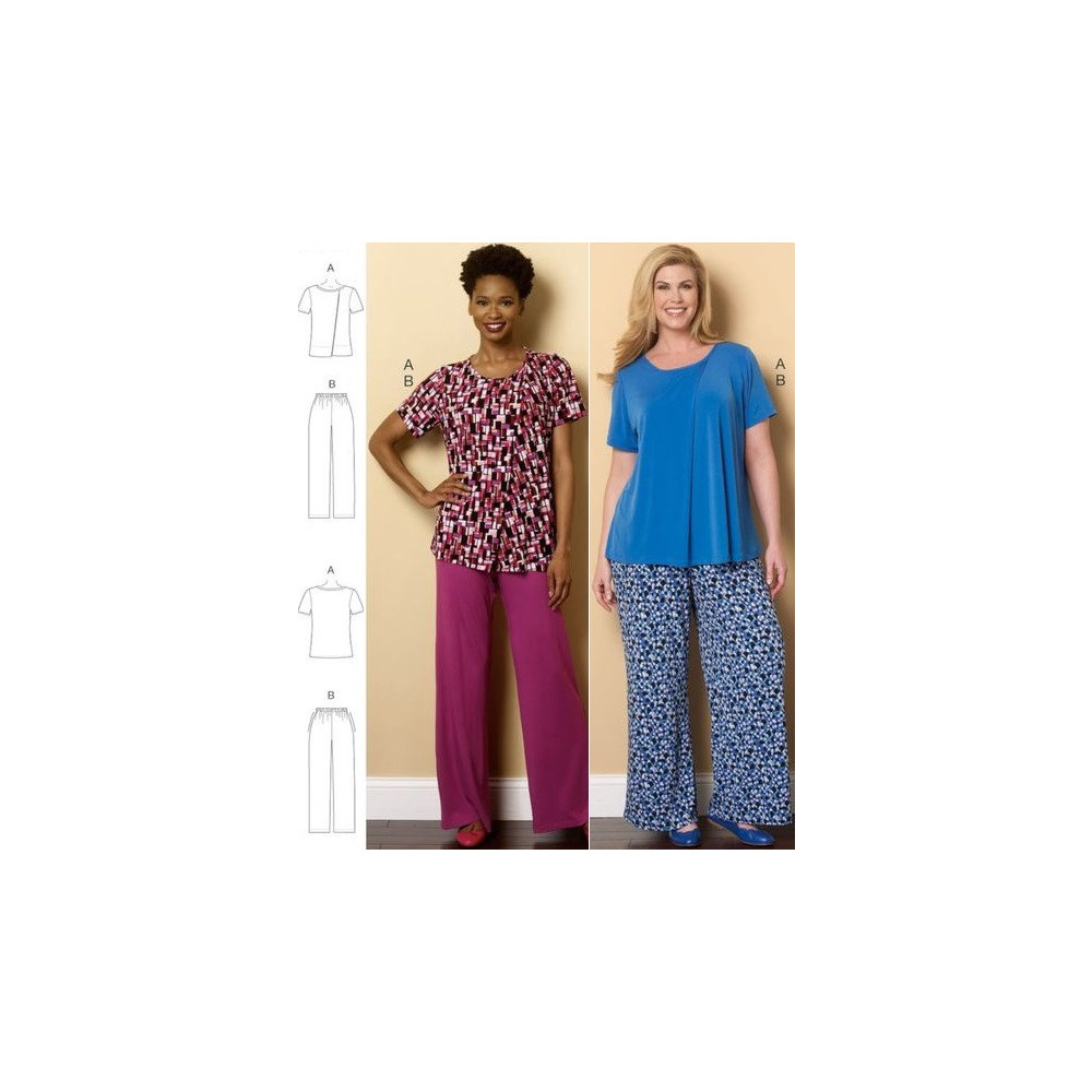 Střih Butterick na set trička se zavinovacím / vrstveným efektem a kalhoty s gumou v pase a kapsami