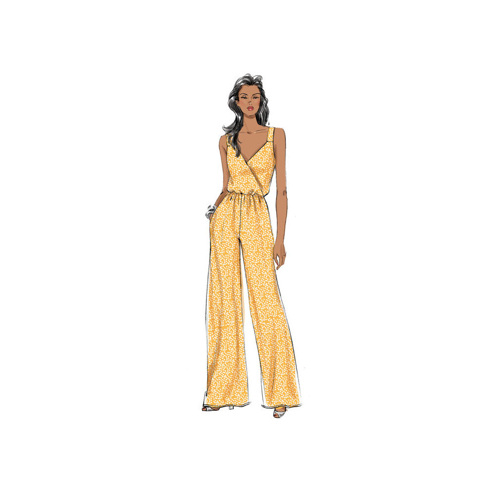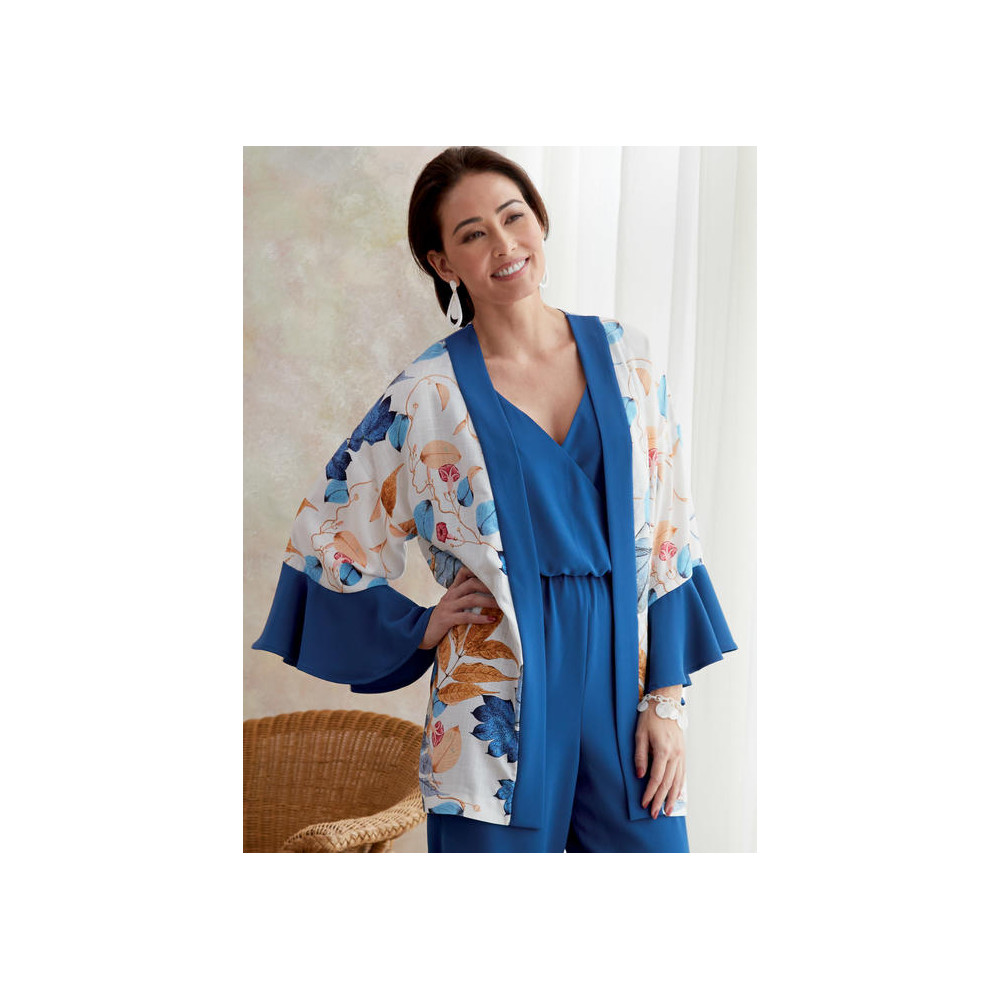Střih Butterick na zavinovací overal na ramínka s gumou v pase a kardigan